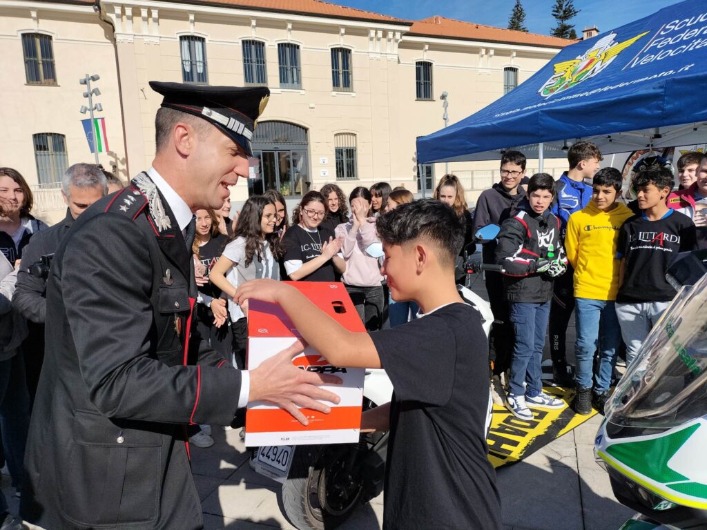 Presenti il presidente della Croce Bianca, Roberto Trincheri, il preside dell’I.C. Littardi Angelo Quaglia, gli assessori Simone Vassallo e Luca Volpe e l’Arma dei Carabinieri, con il Colonnello Mistretta. Al termine della prova pratica, sono stati consegnati alcuni premi ai ragazzi più fortunati, due caschi e un borsello.