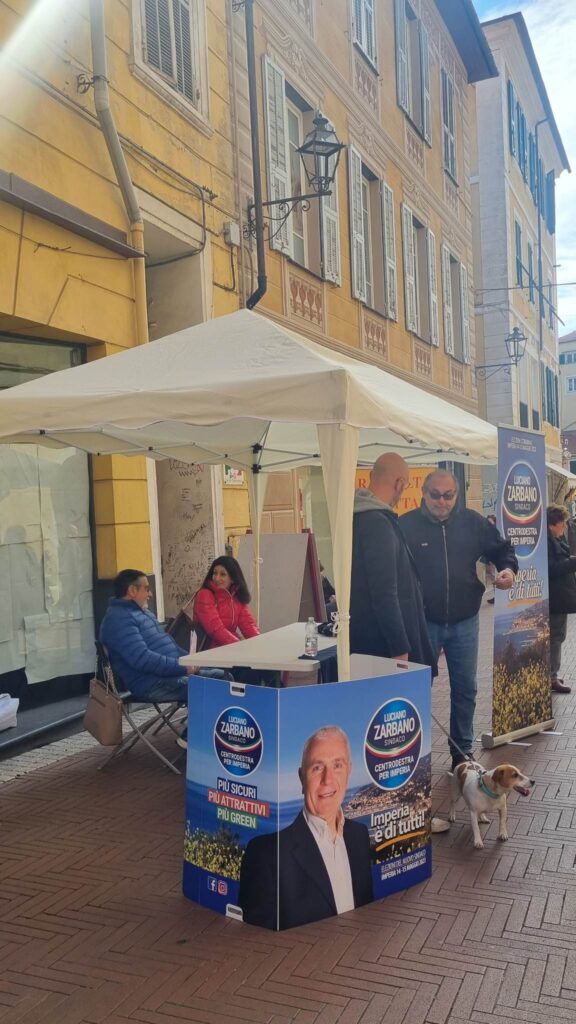 “Una cosa è certa, c’è tanta voglia di cambiamento e io sono disposto a dare una nuova visione a Imperia”. Queste le parole del Colonnello dei Carabinieri Luciano Zarbano candidato sindaco di Imperia, sostenuto dalla lista “Centrodestra per Imperia”, con Fratelli d’Italia e Liguria Popolare, alle prossime elezioni comunali che si terranno a maggio. Questa mattina, in via San Giovanni, il banchetto con i sostenitori per incontrare i cittadini.