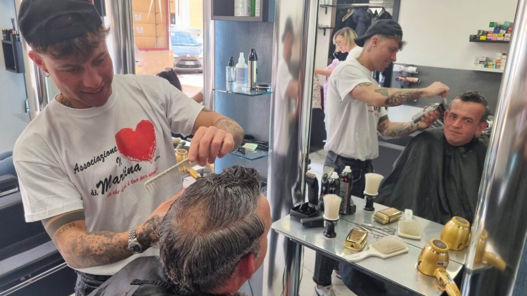 “Sta andando molto bene, la gente ha accolto bene questa iniziativa già due anni fa quando l’abbiamo fatta, oggi di nuovo. Abbiamo iniziato alle 8.30 e una quarantina di persone le abbiamo già fatte, andiamo avanti fino alle 13. Le persone possono passare anche solo per un saluto oppure per tagliarsi i capelli.