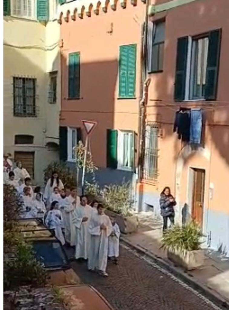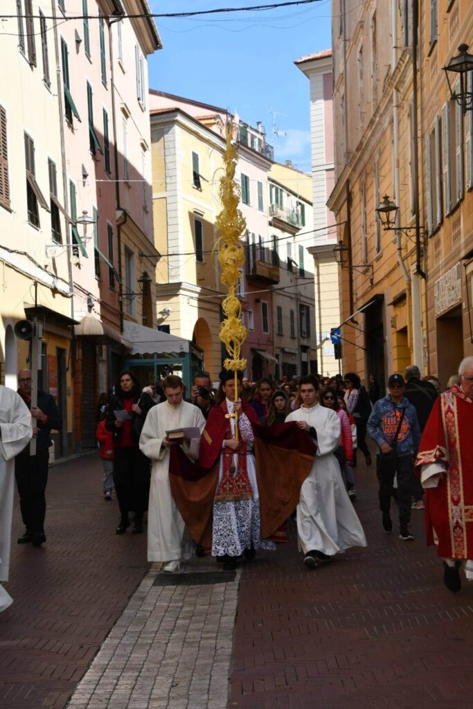 A Oneglia, la funzione organizzata dalla Parrocchia di San Giovanni ha avuto inizio a Borgo Peri con la benedizione del parroco Don Alessandro Ferrua. La manifestazione si è poi spostata, tramite la processione per le vie del centro, alla Collegiata Basilica di San Giovanni dove è stata celebrata la funzione.