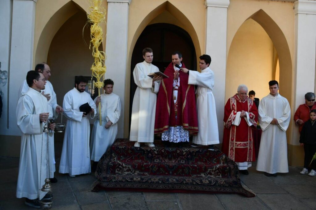 Alla Parrocchia di San Maurizio, la benedizione degli ulivi e delle palme si è svolta in piazza Parasio, seguita dalla messa solenne, celebrata da Don Lucio Fabbris.