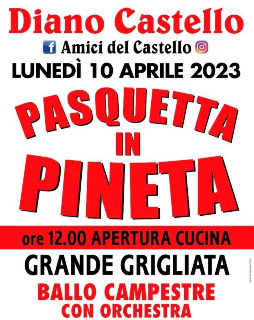 Lunedì 10 Aprile vi aspettiamo in pineta a Diano Castello per festeggiare Pasquetta. Gli amici del castello, associazione del comune di Diano castello, organizzano una grande festa all’aperto mettendo a disposizione la musica dal vivo e un menu per tutti i gusti.