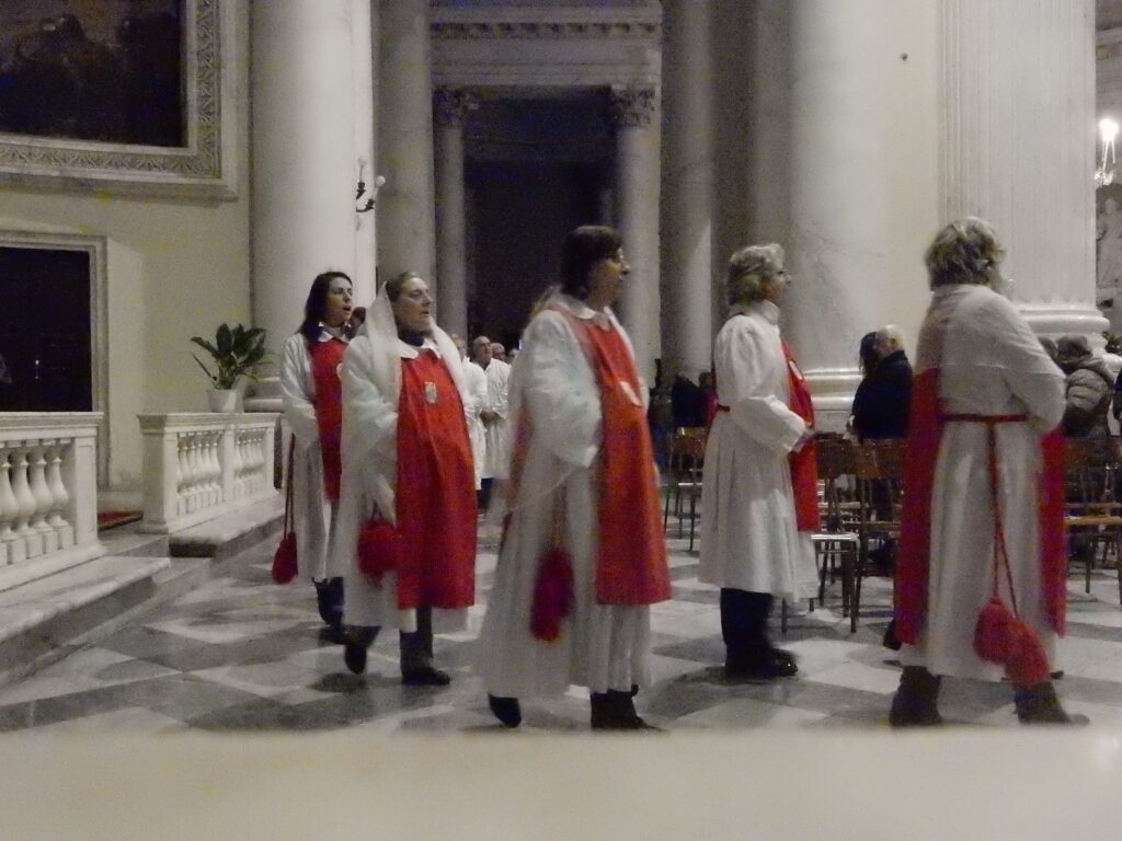 I canti vengono eseguiti in cerchio e senza accompagnamento di strumenti musicali, dalle tre Confraternite portorine di Santa Caterina, San Pietro e Santissima Trinità durante una processione notturna itinerante attraverso i Sepolcri allestiti nelle chiese e negli oratori di Porto Maurizio.