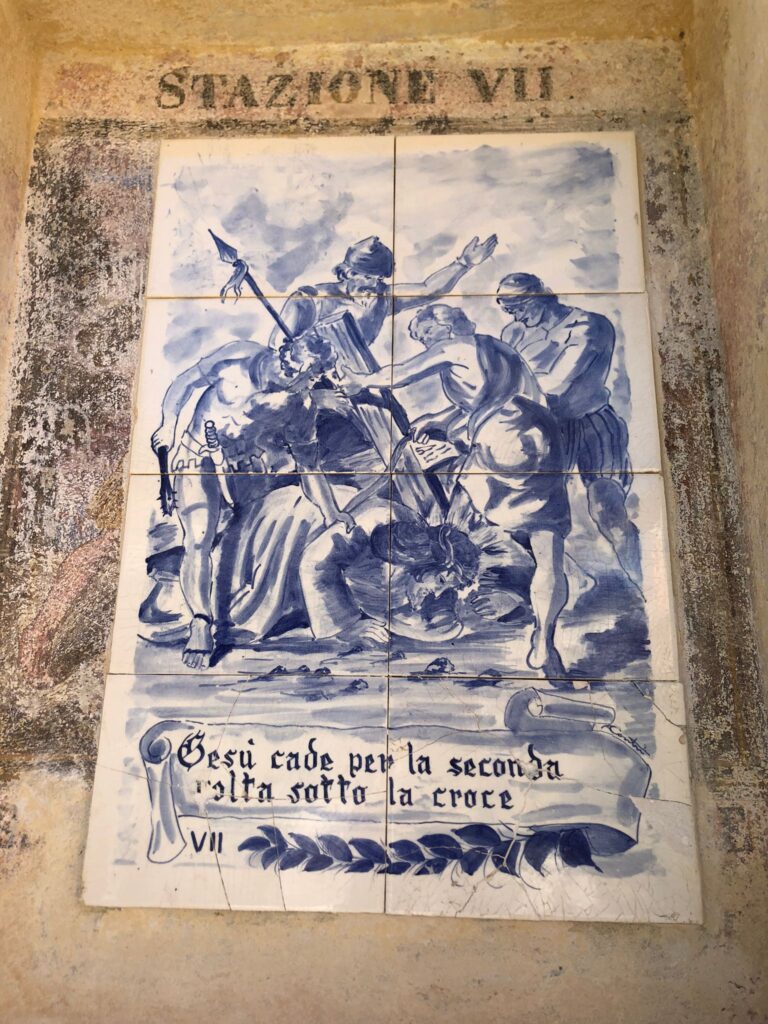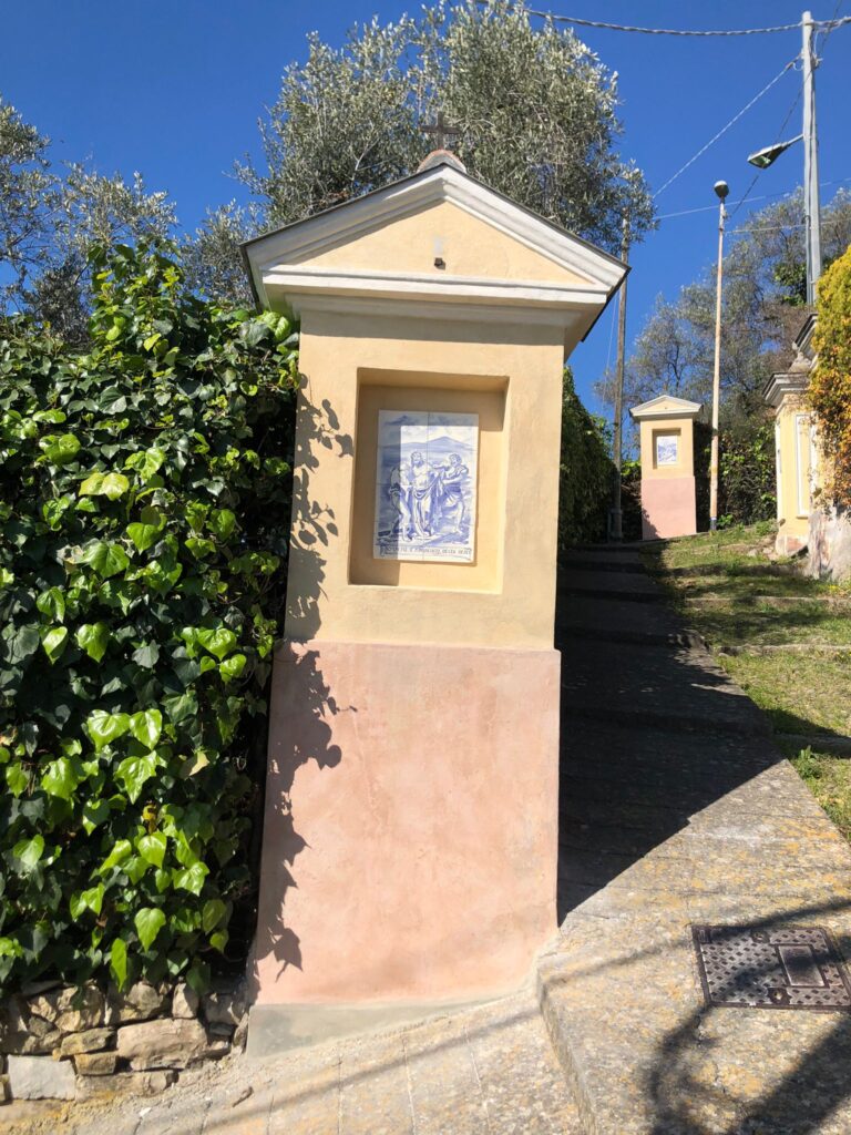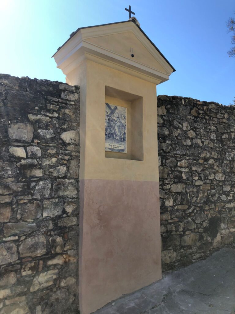 Lungo il percorso sono collocate delle edicole con le stazioni della Via Crucis alle quale i fedeli si soffermano per le preghiere. Fra l’altro le edicole, con le piastrelle di ceramica raffiguranti le scene della Passione di Cristo sono state restaurate proprio quest’anno dalla Confraternita della Santissima Trinità che le aveva fatte installare anni fa.
