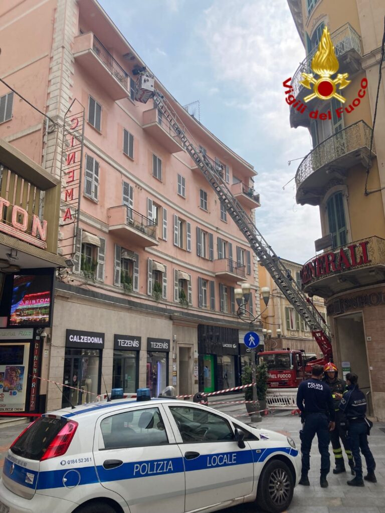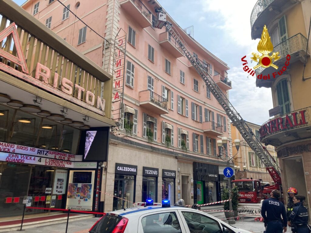 L’intervento è avvenuto a pochi passi dal Teatro Ariston ed è intervenuta anche la Polizia locale che ha chiuso la strada pedonale per consentire le operazione di distacco dei pezzi di cornicione ancora pericolanti. I Vigili del fuoco per intervenire hanno impiegato l’autoscala.