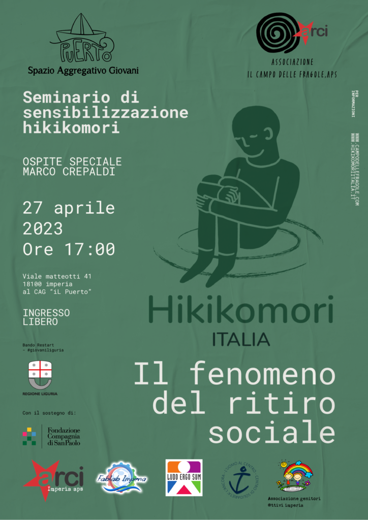 Giovedì 27 aprile, alle ore 17.00, al Centro Aggregativo il Puerto, insieme a hikikomoriitalia e a Marco Crepaldi, psicologo, autore del libro “Hikikomori. I giovani che non escono di casa” , verrà trattato il difficile tema degli Hikikomori e dell’isolamento sociale.