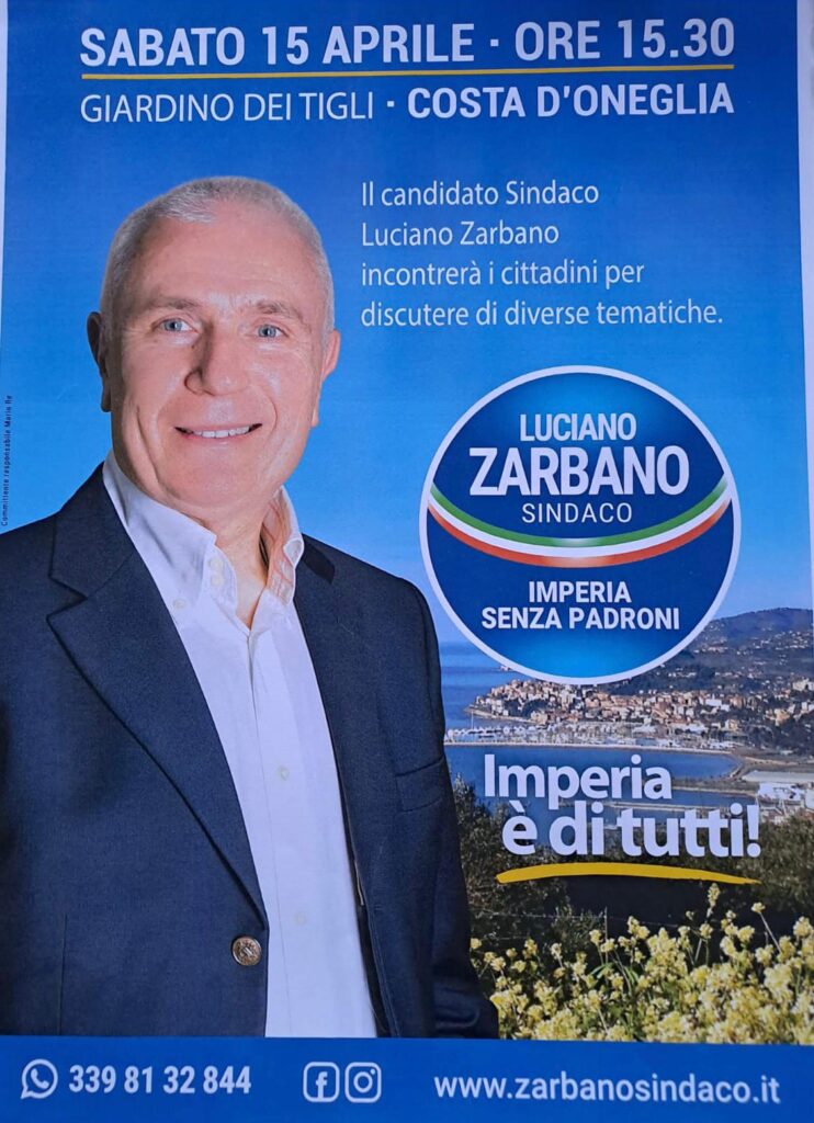 “Sto raccogliendo numerose istanze da parte dei miei concittadini, quando sarò sindaco metterò anima e corpo per non deluderli. Vi aspetto domani a Costa d’Oneglia, frazione che vive grazie ai residenti e all’impegno del Circolo Manuel Belgrano”. Conclude Luciano Zarbano.