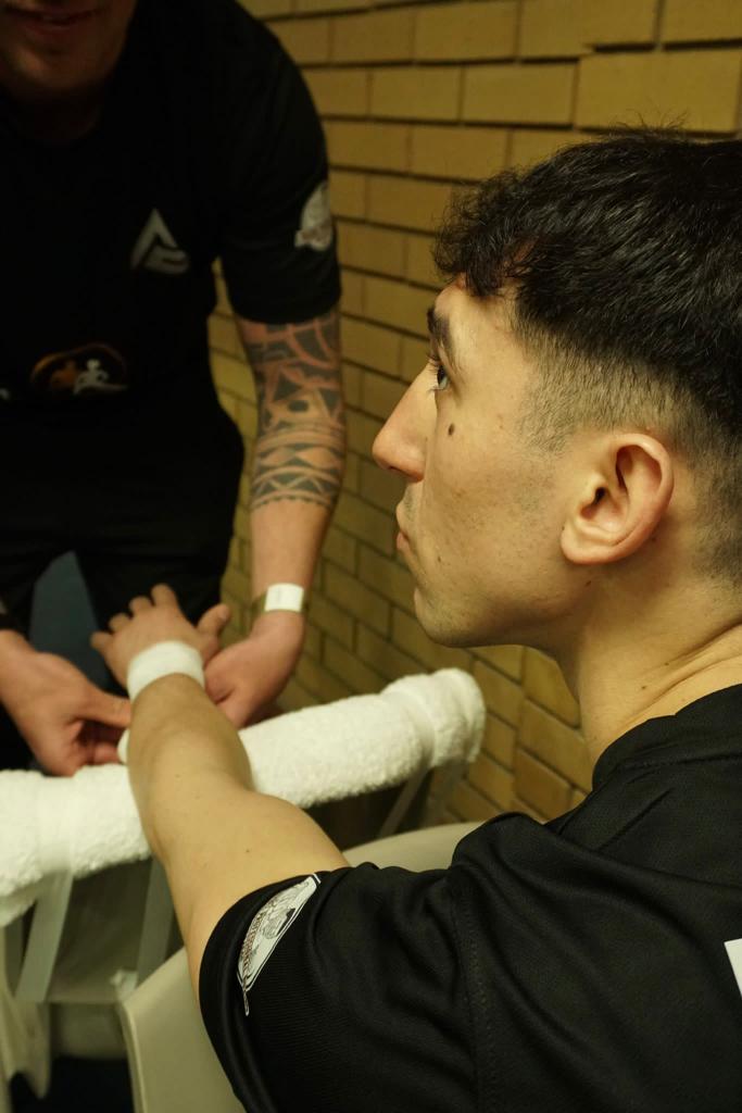Andrea ha combattuto indossando i pantaloncini griffati “Imperia”.