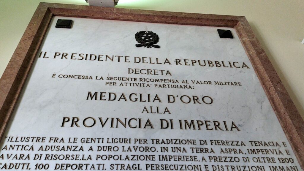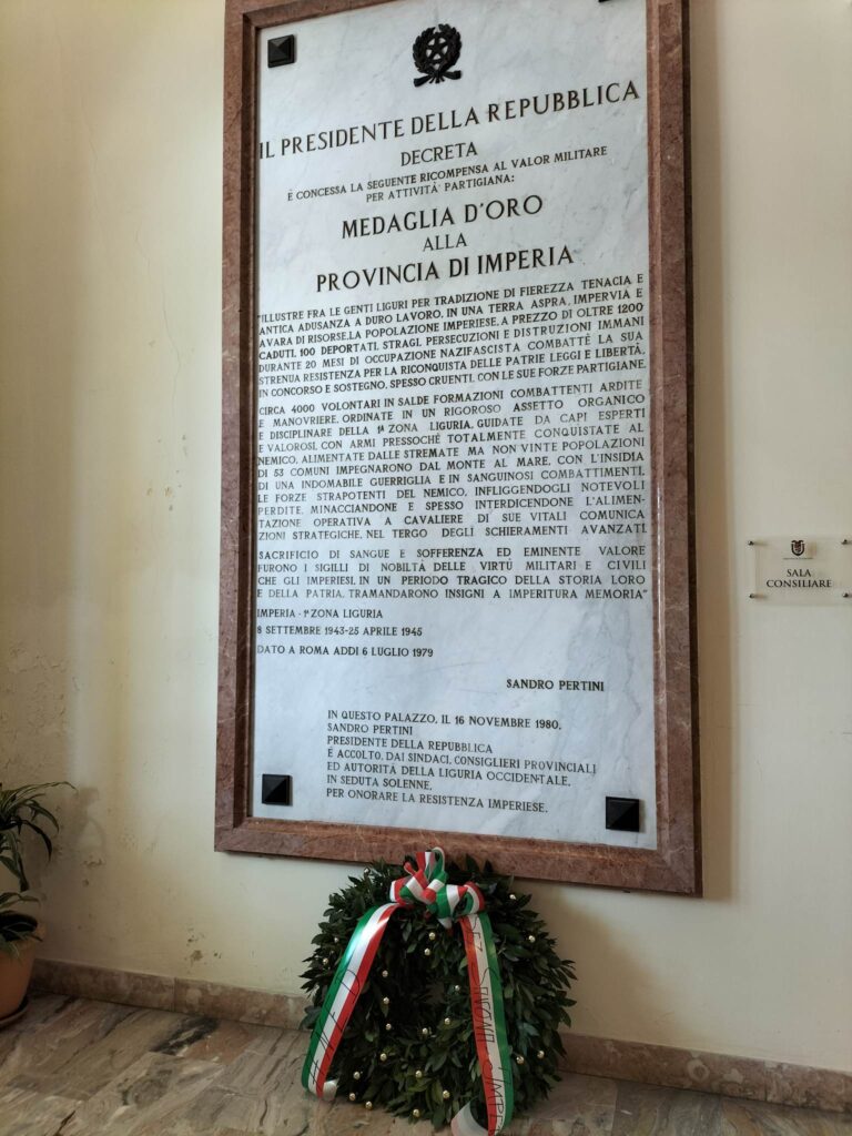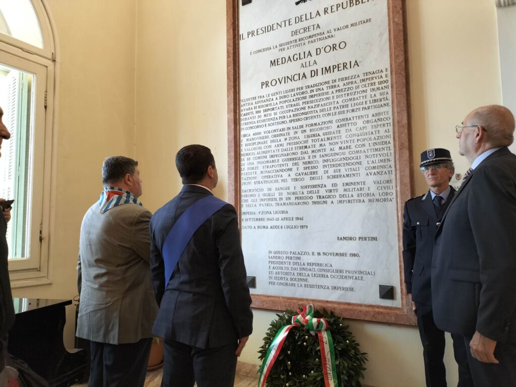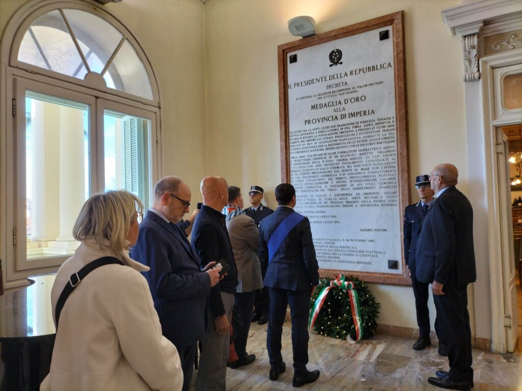 Ha avuto luogo questa mattina, venerdì 21 aprile, presso la Sala del Consiglio Provinciale la Cerimonia a ricordo del Conferimento della Medaglia d’Oro al Valor Militare per la Resistenza alla Provincia di Imperia.