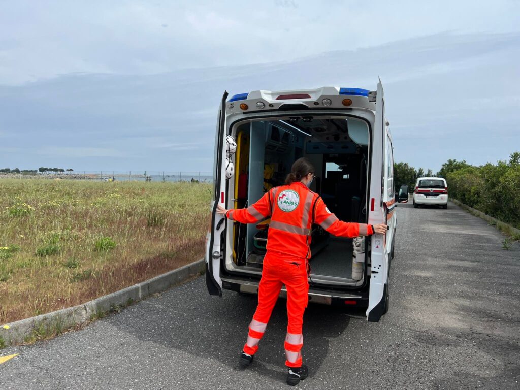 Il piccolo paziente trasportato all’eliporto da un’ambulanza della Croce Bianca