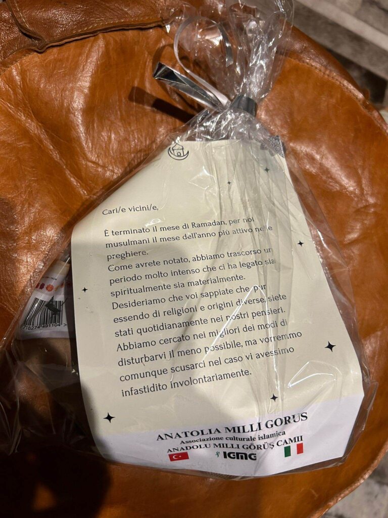 “Vorremmo rendere noto gesto assolutamente encomiabile – raccontano alcuni residenti – Abitiamo in via Filippo Airenti vicino alla moschea frequentata prevalentemente dalla comunità turca. Nel periodo del Ramadan il grande afflusso di fedeli ha creato non pochi disagi alla zona in termini di traffico, parcheggi e giovani che per un certo periodo, anche antecedente, hanno frequentato le strade adiacenti con schiamazzi e, diciamo, poco rispetto delle pulizie stradali e nei pressi dei nostri portoni. Diverse volte anche io sono intervenuto, sempre con rispetto ed educazione, per far notare soprattutto a questi giovani di avere più attenzione ed educazione. Le risposte sono state sempre molto rispettose. In tanti anni abbiamo sempre avuto un’ottima convivenza senza alcun problema. Ieri pomeriggio un gruppo di ragazzi e ragazze turche si sono presentati nel nostro palazzo e hanno consegnato a ogni inquilino un pensiero con le scuse per aver arrecato disagio in questo periodo. Tutto con grande garbo ed umiltà. Iniziativa che ci ha colti piacevolmente sorpresi. Riteniamo questo gesto di amicizia e convivenza davvero significativo e porto, con questo messaggio, l’apprezzamento di tutti noi residenti in zona. La pacifica convivenza e la crescita di un quartiere sono valori assoluti, soprattutto quando avvengono in presenza di comunità di diverse origini”.