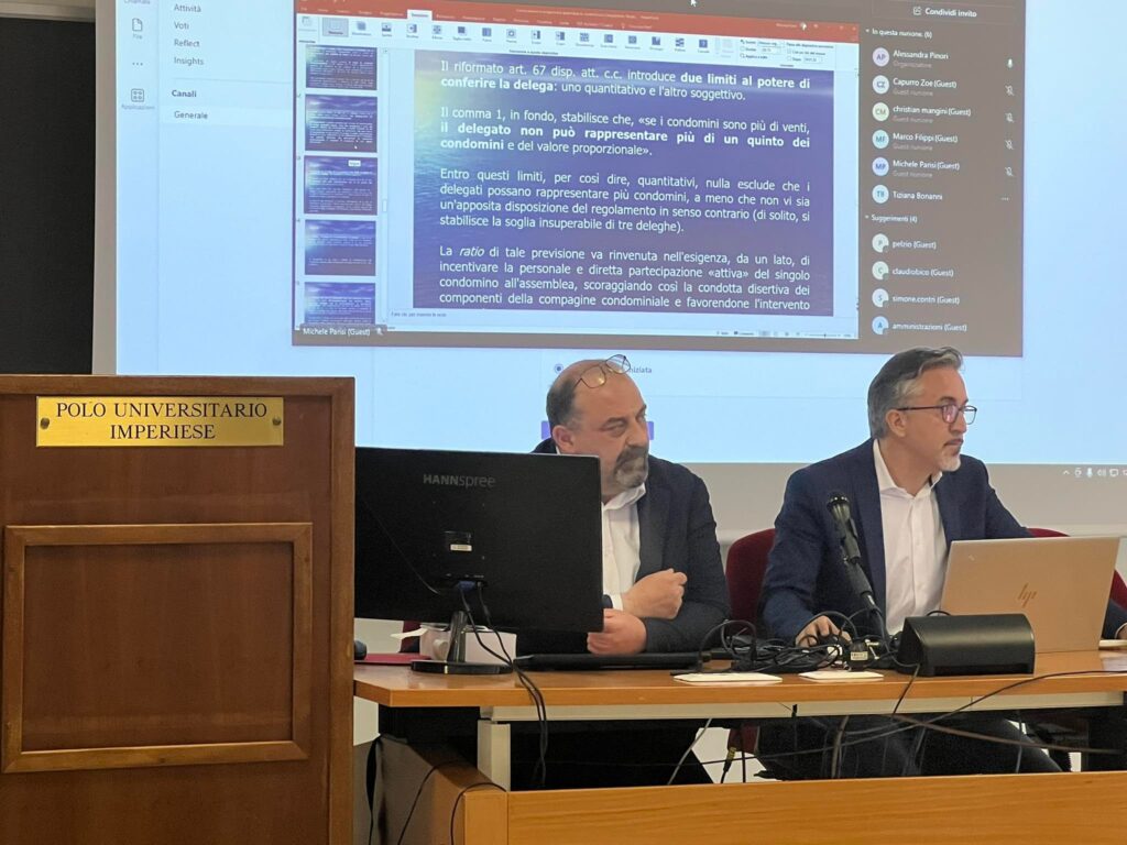 Al Polo Universitario imperiese in occasione del corso di alta formazione per amministratori di condominio si è tenuta una prova pratica con simulazione di un’assemblea di condominio.