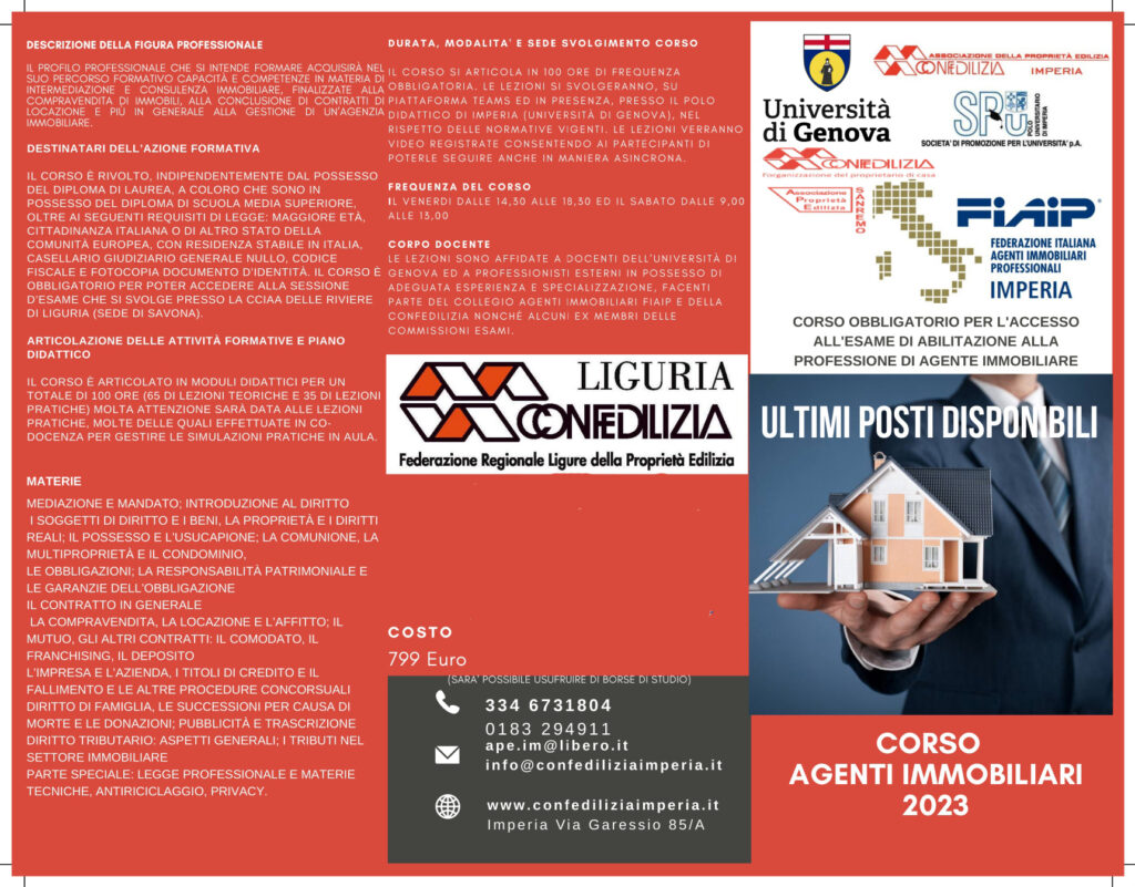 Il corso si svolge al Polo universitario imperiese su iniziativa di Confedilizia, Fiaip e Università di Genova, con la collaborazione della Spu, la Società di promozione del Polo universitario di Imperia.