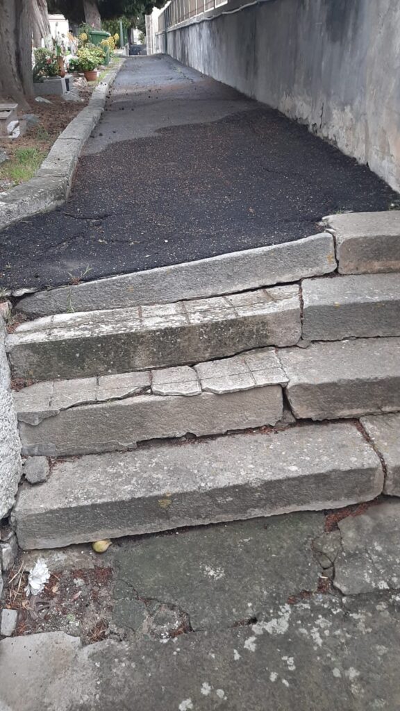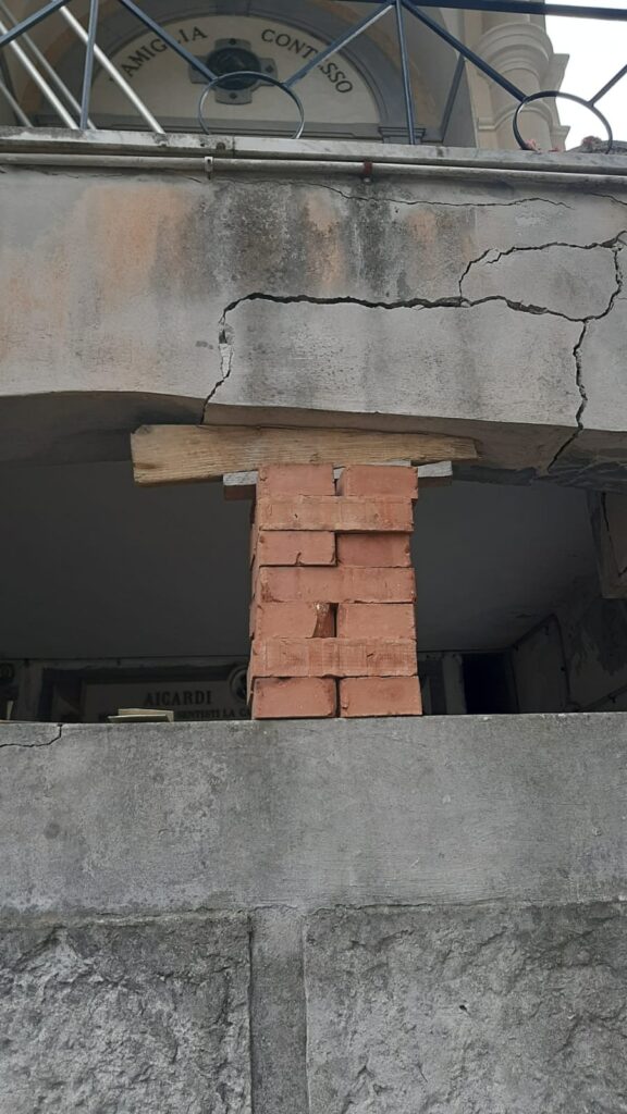 “Prosegue il nostro giro per la città e le sue frazioni, la nostra attenzione si è posta sullo stato dei cimiteri. Il camposanto di Porto Maurizio manca di una manutenzione ad hoc da troppo tempo, le stradine interne infatti sono dissestate, così come i gradini e ciò rende pericoloso il passaggio, soprattutto per gli anziani. La cappella e il loggiato superiore sono chiusi da tempo indefinito e per accedere alla parte superiore si deve allungare passando da fuori.