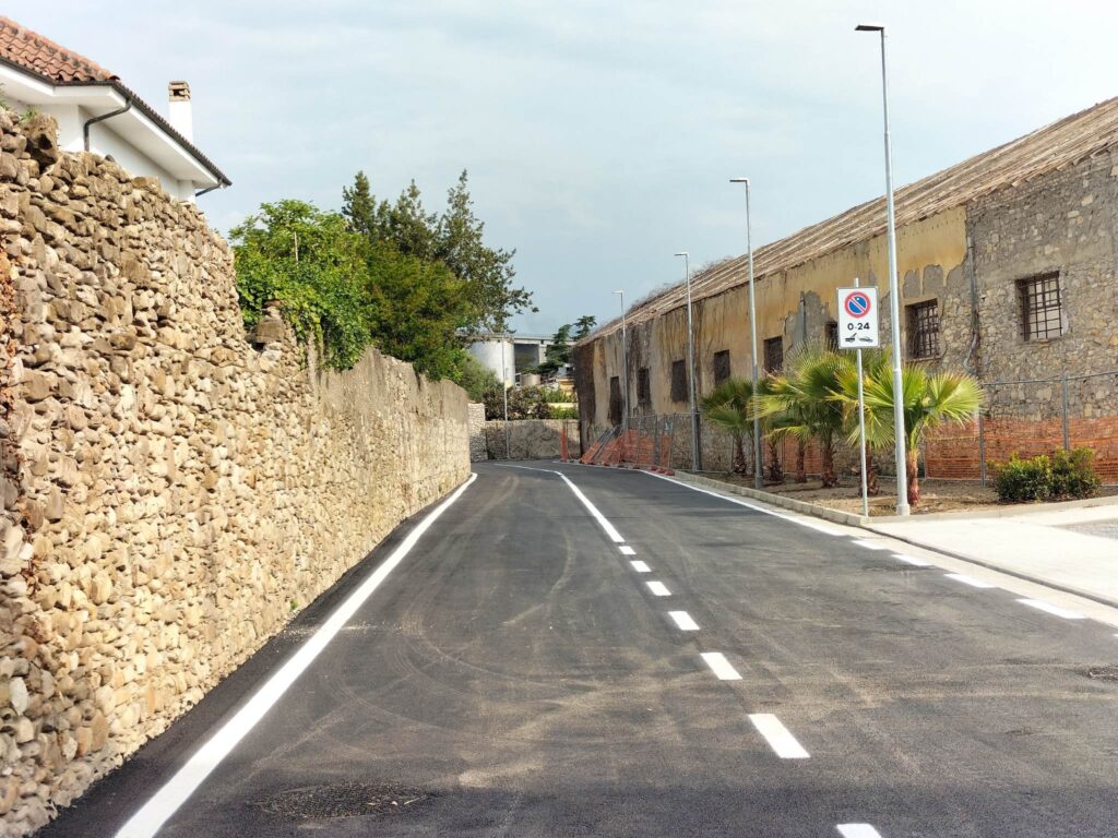 Il tratto viene dotato anche di un percorso pedonale che sarà completato a breve grazie al recupero dello stabile ex caserma.