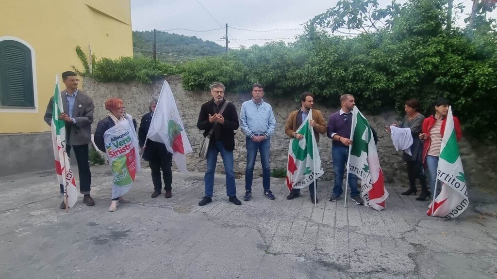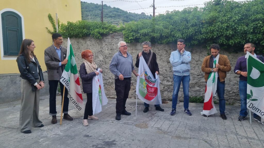 Presenti diversi candidati e sostenitori delle liste Imperia Rinasce, Partito Democratico e Alleanza Verdi e Sinistra.