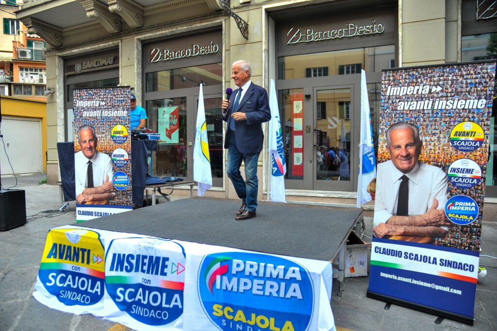 Primo comizio di fine campagna elettorale questa sera, 11 maggio, in piazza Serra, a Porto Maurizio, da parte del Sindaco uscente, ricandidato, Claudio Scajola (il secondo si terrà domani, 12 maggio, in Piazza San Giovanni, a Oneglia, alle 18). Davanti a un nutrito gruppo di attivisti e simpatizzanti, l’ex Ministro ha tenuto un discorso di poco più di una ventina di minuti toccando alcuni dei temi più importanti, dalla sicurezza all’arredo urbano, dai rifiuti alle opere pubbliche. Non sono mancate frecciate gli avversari e agli organi di stampa e momenti di commozione, come quando ha ricordato il tempo sottratto alla moglie e ai figli per il suo impegno politico.