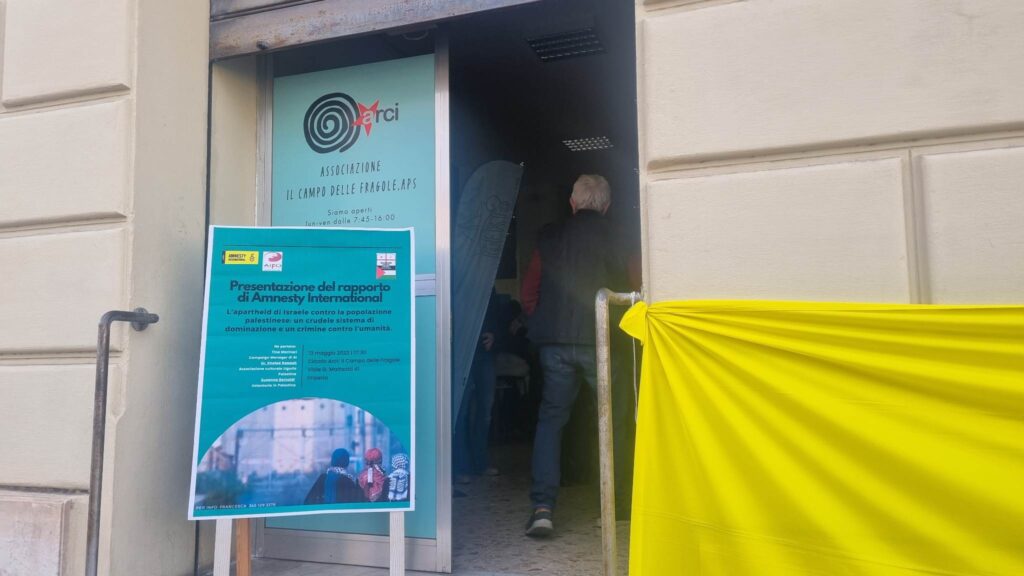 Si è svolta oggi, presso il Circolo ARCI “Il Campo delle Fragole” sito in Viale Matteotti a Imperia, la presentazione del Rapporto con il quale Amnesty International ha dichiarato Israele stato di Apartheid per i crimini commessi contro il popolo palestinese.