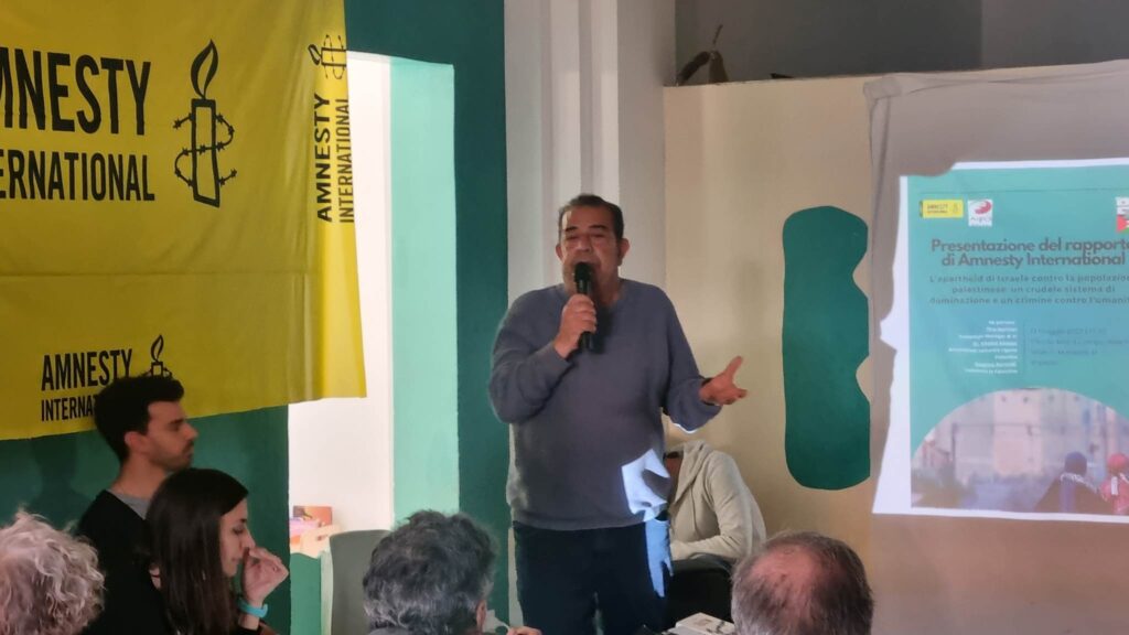 “Dopo tre anni di ricerca Amnesty International ha diffuso questo rapporto in cui certifica la violazione sistematica nei confronti del popolo palestinese sia nei territori palestinesi occupati, sia in Israele, sia nei confronti dei palestinesi che si trovano in Israele o fuori da quei territori. I palestinesi subiscono un regime di Apartheid, che significa che un gruppo etnico esercita potere, controllo e dominio nei confronti di un altro gruppo etnico.