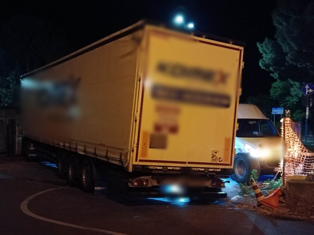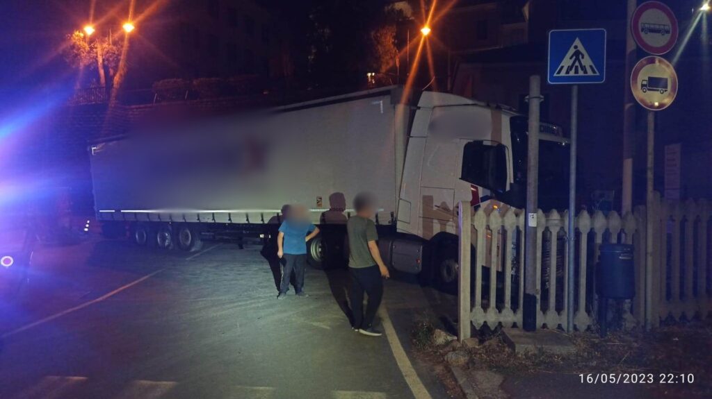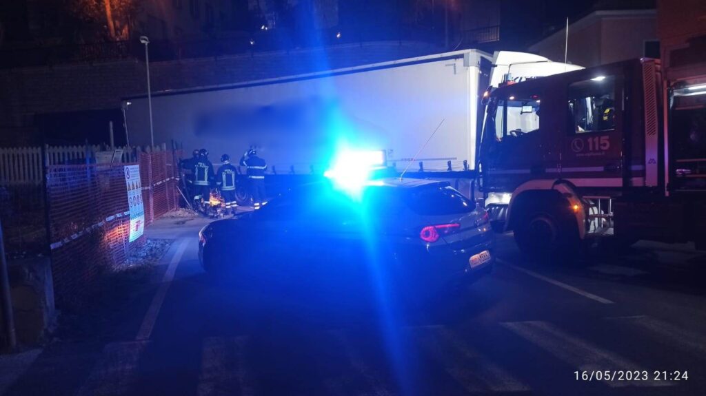 Intervento di Polizia e Vigili del Fuoco nella tarda serata di ieri, 16 maggio, per un tir polacco rimasto incastrato nell’ex passaggio a livello dell’ex stazione di Porto Maurizio.