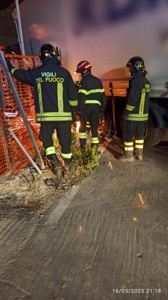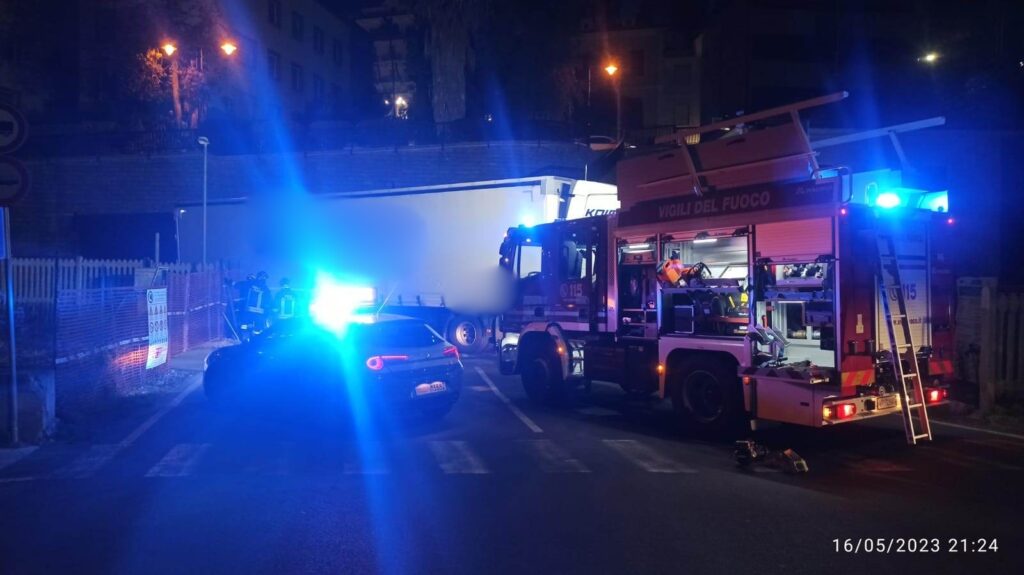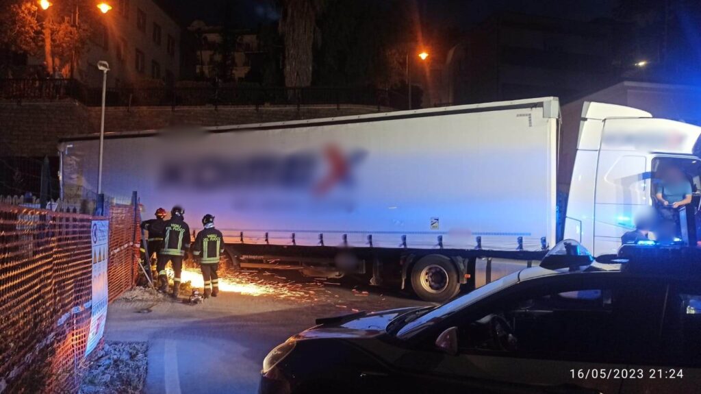 A seguito dell’incidente sono esplose alcune gomme. Per disincastrare il mezzo pesante, rimasto bloccato per diverse ore, è stato necessario l’intervento dei Vigili del Fuoco e di una ditta specializzata.