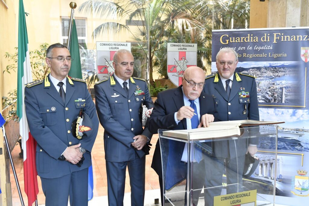 Nella mattinata odierna, il Prefetto di Imperia, Dott. Valerio Massimo Romeo, si è recato in visita presso la storica Caserma “San Giorgio” di Genova, sede del Comando Regionale Liguria della Guardia di Finanza, ove è stato accolto, con gli onori di rito, dal Gen. D. Rosario Massino, Comandante Regionale Liguria, unitamente al Capo di Stato Maggiore, Gen. B. Raffaele Ditroia.