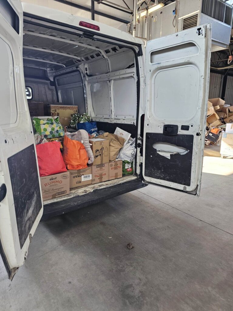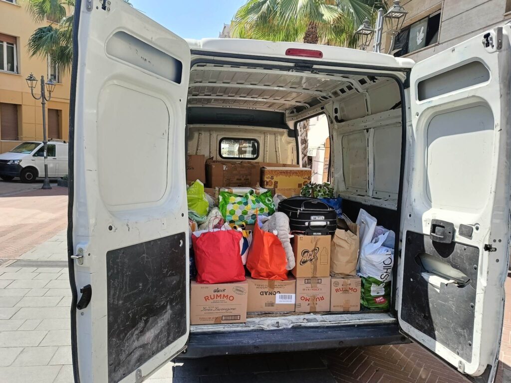 L’associazione ha raccolto alimenti, vestiario, prodotti per l’igiene personale. Le operazioni di carico, a bordo di un furgone, sono avvenute questa mattina, in piazza Roma,