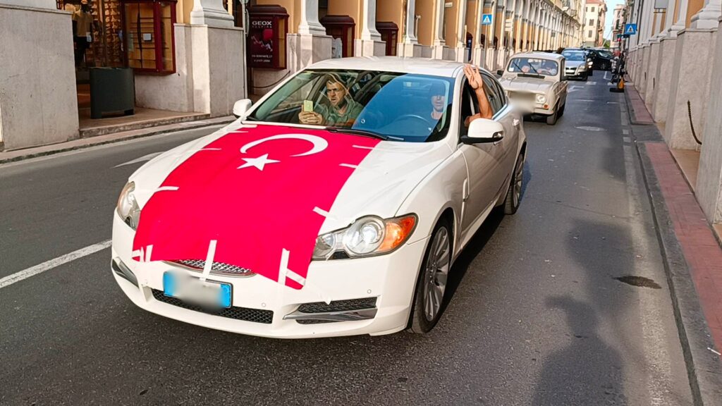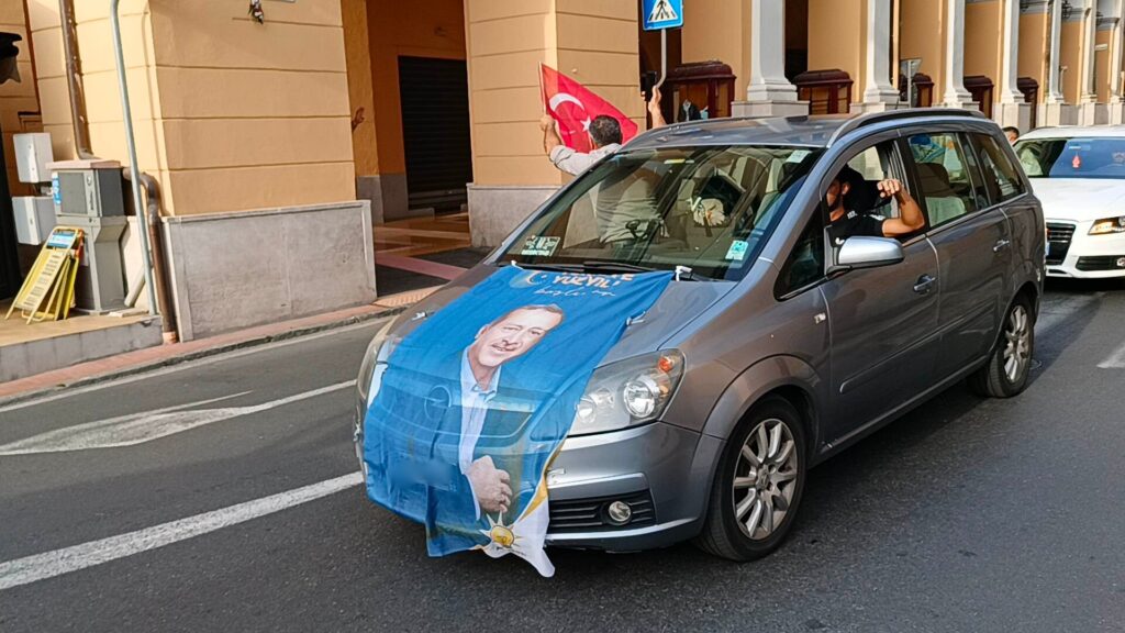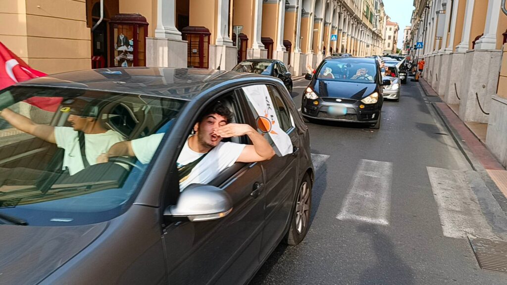 Poco dopo le 18,30, quando le agenzie di stampa hanno battuto la notizia della vittoria di Erdogan, in vantaggio con il 52% delle preferenze sullo sfidante Kilicdaroglu, è iniziata la festa della comunità turca imperiese, con caroselli lungo le vie della città. La “carovana” di auto, sventolando bandiere e fotografie del leader turco, è partita da via Nizza per raggiungere la Rabina, destando la curiosità di tante persone.