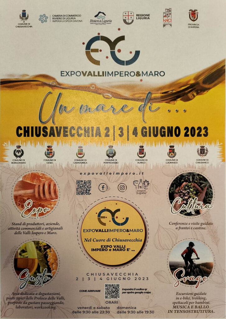 “Expo delle Valli Impero e Maro” offrirà una grande vetrina delle eccellenze del territorio: oltre alla parte espositiva con gli stand delle aziende agroalimentari e artigianali della valle nel cuore di Chiusavecchia, non mancheranno degustazioni, laboratori di cucina, presentazioni, visite guidate in aziende e musei, e tante attività outdoor.