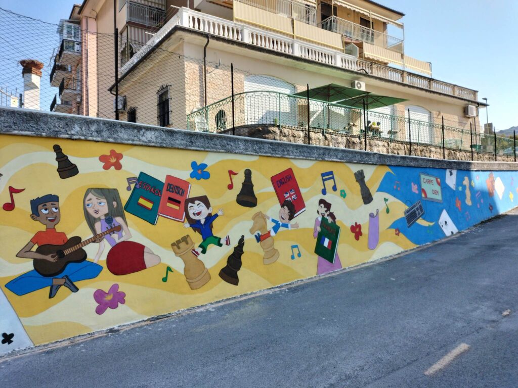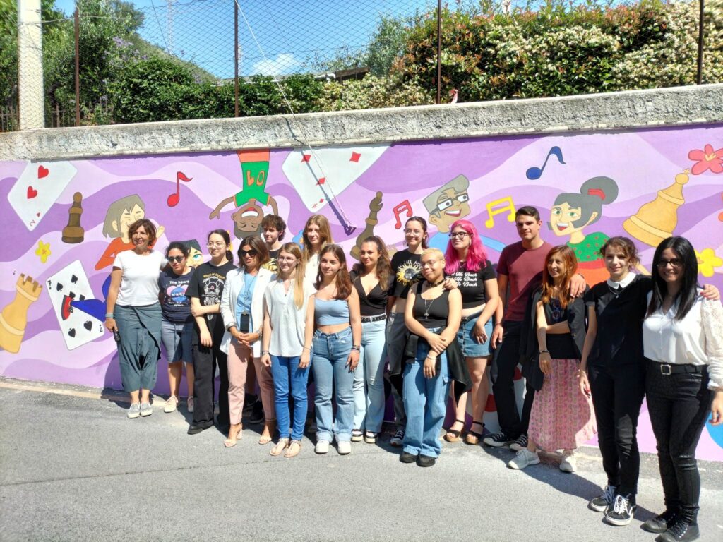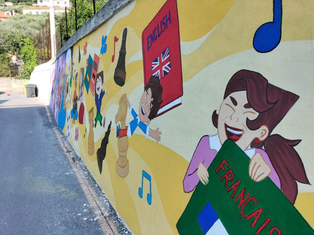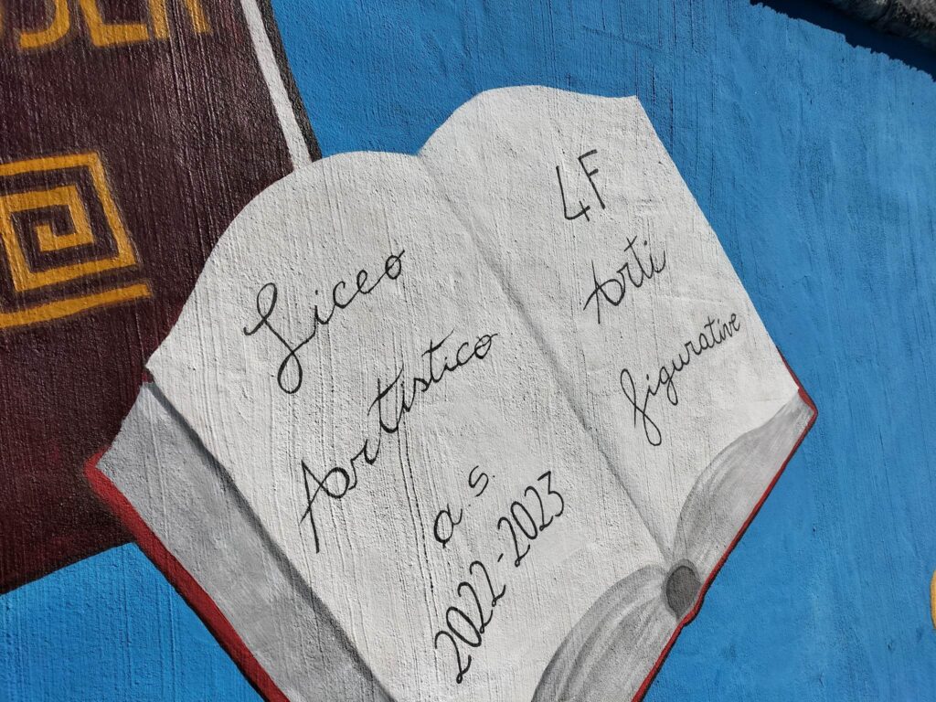 “Il murales è stato realizzato dalla classe 4^ di Arti Figurative , come progetto di alternanza scuola lavoro. Negli ultimi anni la scuola ha pensato di coinvolgere gli alunni in un unico progetto pittorico.