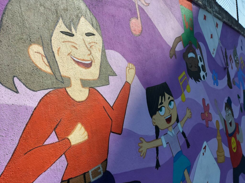 I ragazzi hanno fatto una progettazione in classe. L’associazione Genitori@ttivi ha scelto insieme al Carpe Diem il progetto che era più significativo per essere poi realizzato su questa parete.