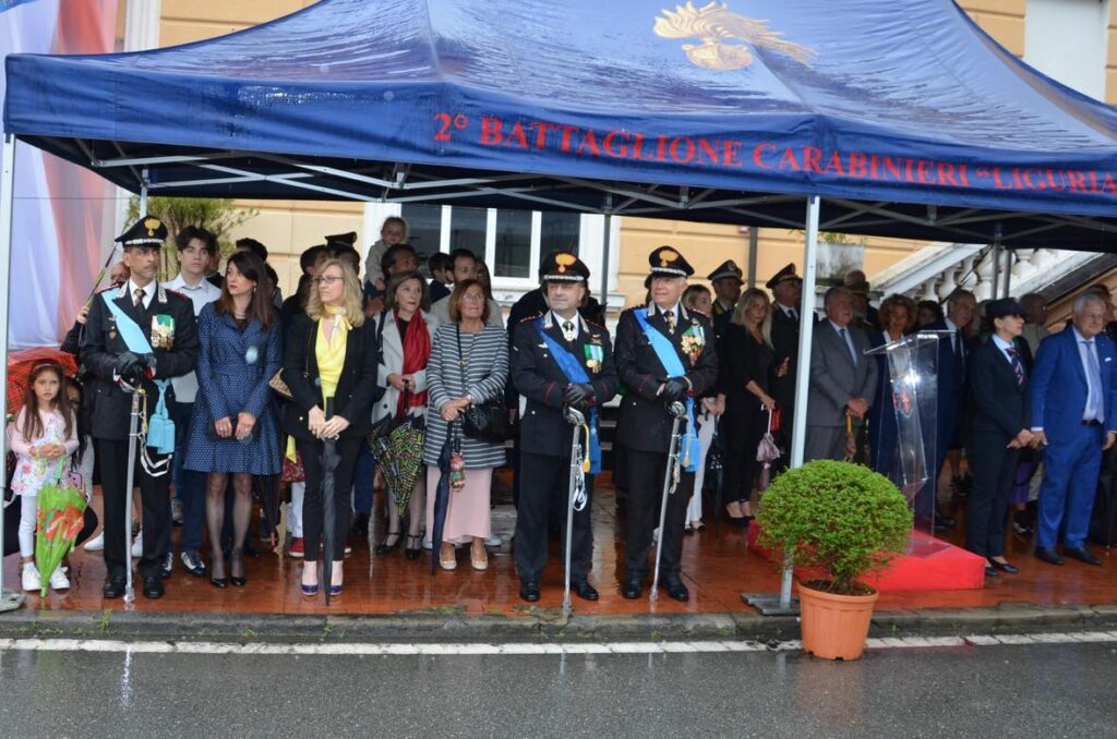 Erano presenti anche i medaglieri delle associazioni patriottiche, combattentistiche e d’Arma, le bandiere delle Sezioni dell’Associazione Nazionale Carabinieri (ANC), della Città Metropolitana di Genova ed il Medagliere dell’Istituto NASTRO AZZURRO, nonché il Gonfalone della Regione Liguria e della Città Metropolitana di Genova decorato di Medaglia d’Oro al Merito Civile, e quello della Città di Genova decorato di Medaglia d’Oro al Valor Militare.