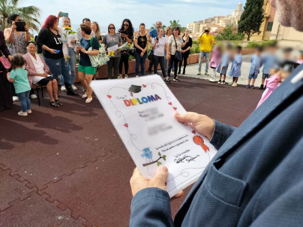 Presenti tantissimi bambini, i genitori, le insegnanti, l’assessore Laura Gandolfo e il dirigente scolastico Angelo Quaglia. Tanta festa e commozione per i più piccoli che, nel ricevere l’attestato, si preparano ad affrontare con spirito il prossimo anno scolastico alle elementari.