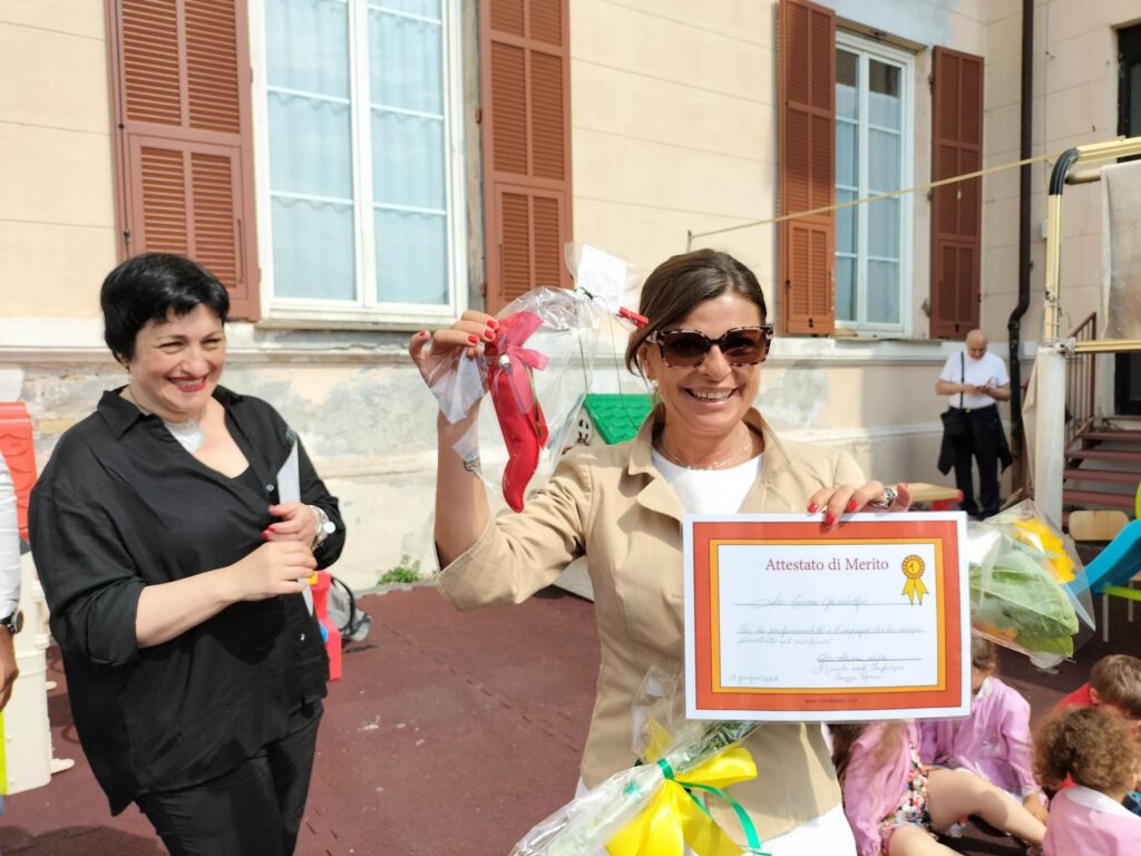 Nel dettaglio, a turno, l’assessore Laura Gandolfo e il dirigente Angelo Quaglia hanno consegnato dei piccoli attestati ai bambini. Le maestre hanno donato anche un “attestato di merito” al neo assessore, mentre i genitori hanno regalato dei piccoli doni alle insegnati. La festa si è conclusa con un grande buffet.