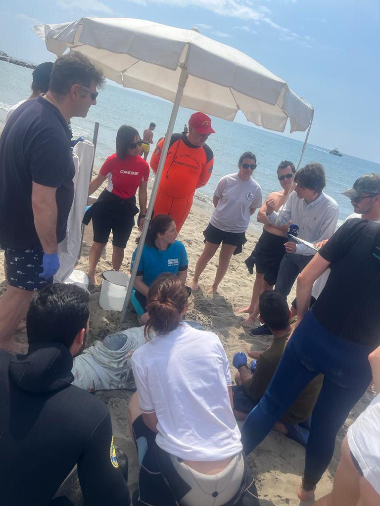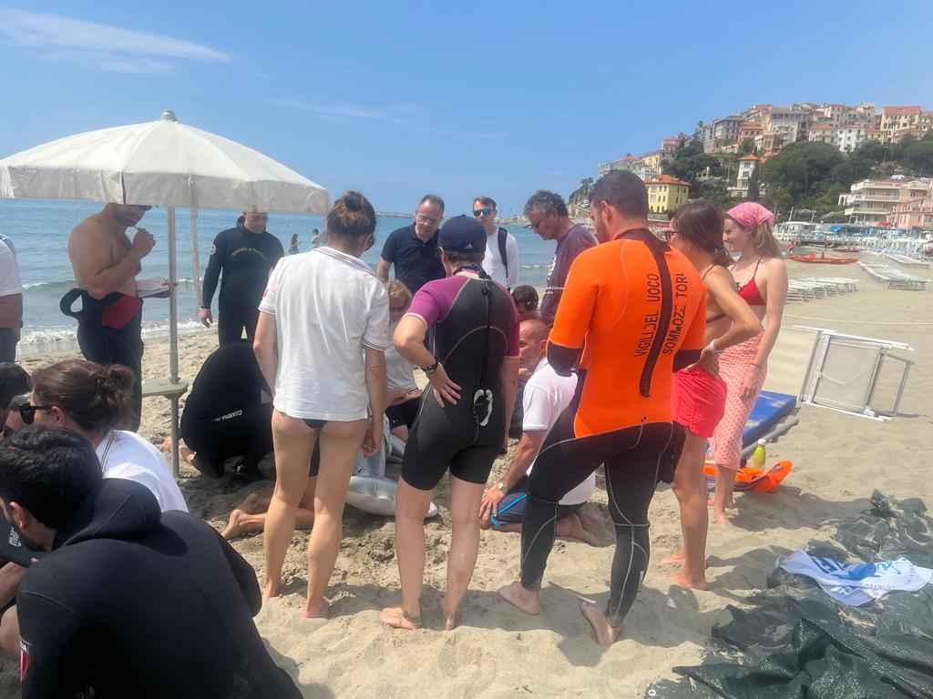 La formazione è stata effettuata anche “sul campo”: infatti i partecipanti al corso hanno simulato, presso la spiaggia di Imperia, un intervento di primo soccorso su un animale spiaggiato.