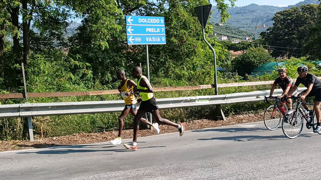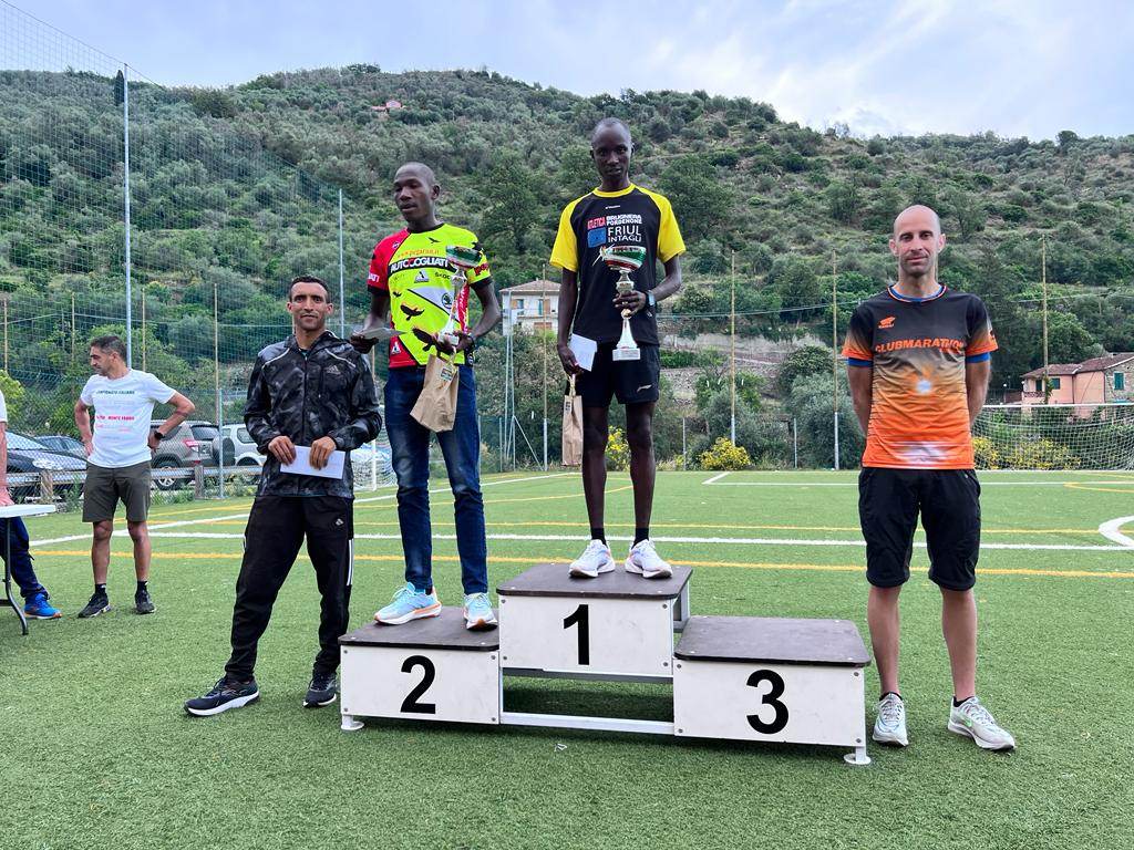 Al maschile vince il keniano Kalale Ishmael dell’atletica Brugnera con il tempo di 1h40’20”, al secondo posto dopo una battaglia sulle rampe finali ha prevalso il keniano Abraham Ekwam con il tempo di 1h42’37”, al terzo posto Belluschi Michele del Grottini Team Recanati, ottimo maratoneta, con il tempo di 1h43’17”. Si e’ ben classificato con il 4° posto il nostro Cristiano Salerno del Marathon Club Imperia, con il tempo di 1h46’04”.