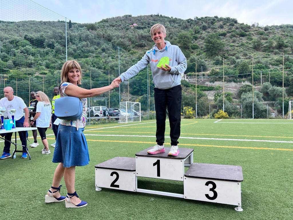 L’atleta Annarita Azzolini del Marathon Club Imperia, prima del comune di Imperia ha ricevuto il premio di “Ina Sterlina d’Oro” messa in palio dal campionissimo e ideatore e protagonista del Faudo Luciano Acquarone.