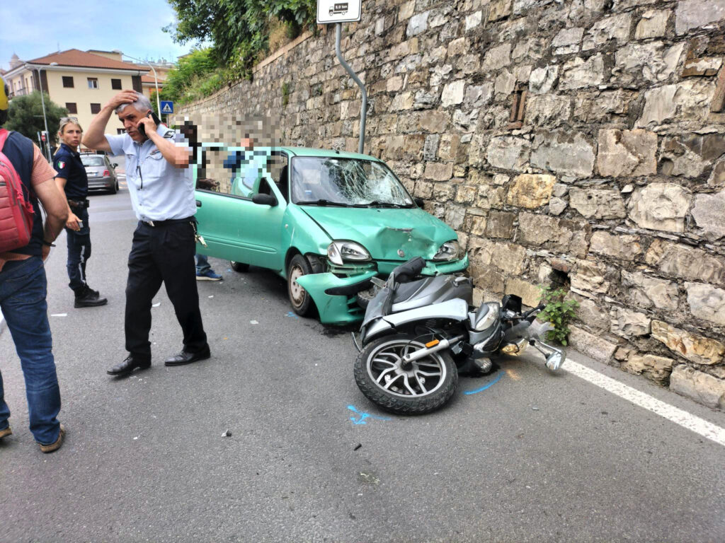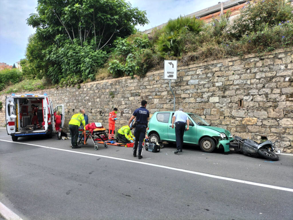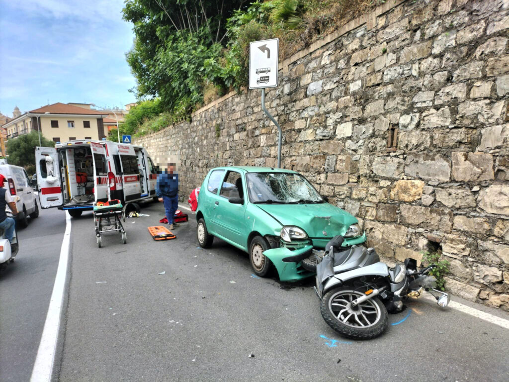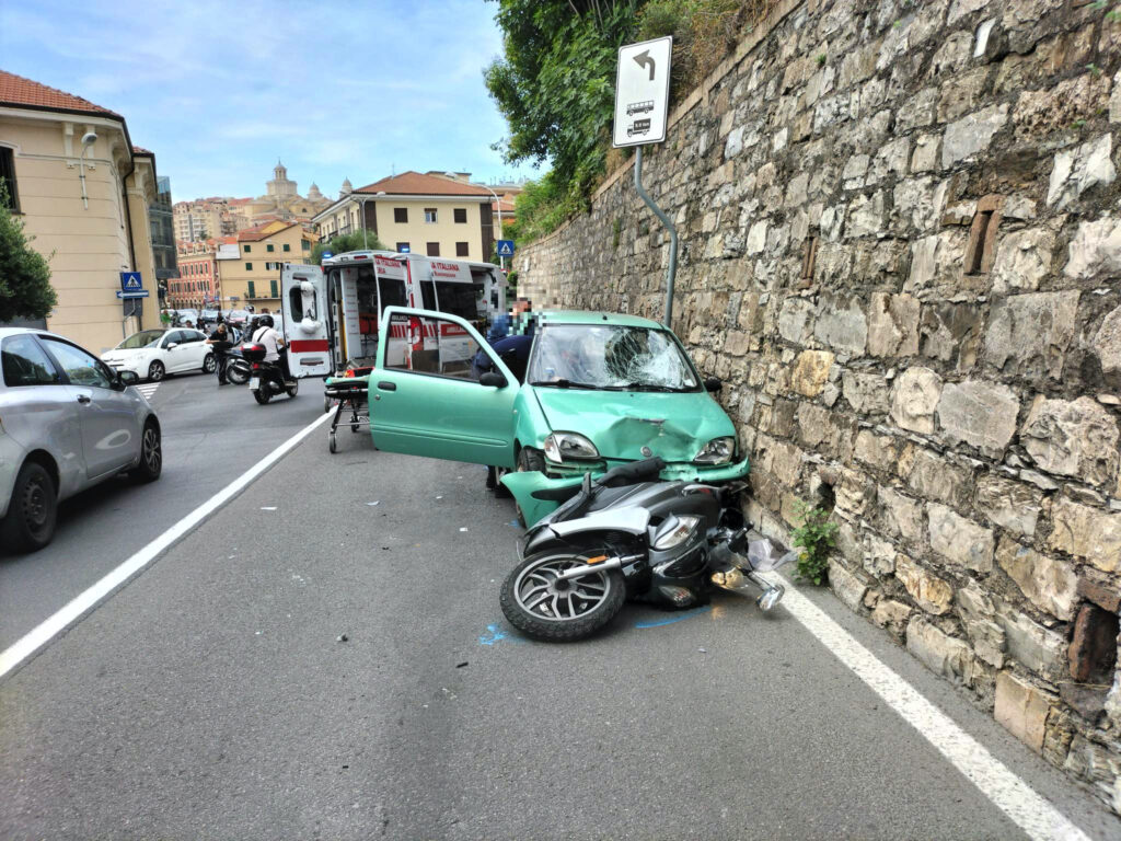 Grave incidente stradale questa mattina attorno alle ore 10 in via San Lazzaro a Imperia. Un’auto, una Fiat 600 e uno scooter si sono scontrati per cause ancora in fase di accertamento. Da una prima ricostruzione sembra che lo scontro tra i due veicoli sia stato frontale.