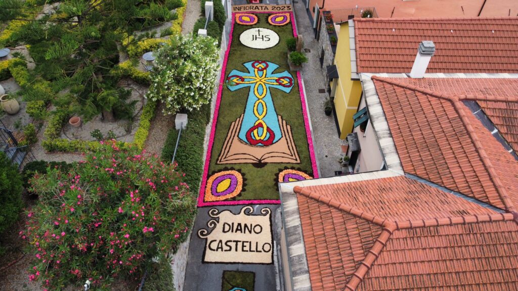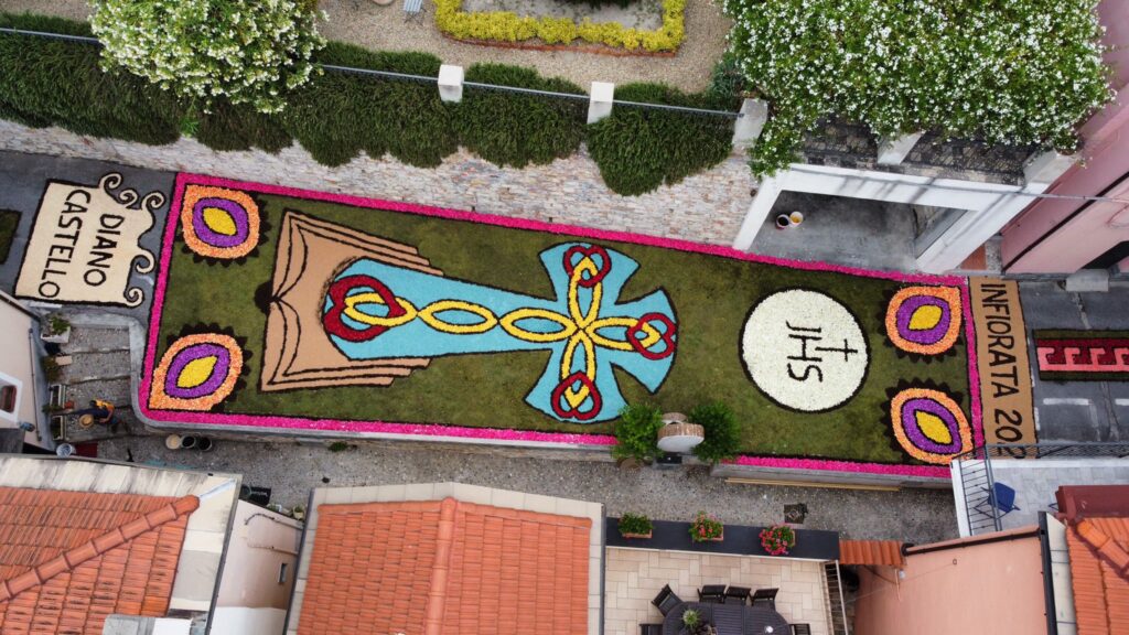“Si è conclusa nel migliore dei modi la 12° edizione dell’Infiorata nel centro storico di Diano Castello. Il ringraziamento principale va a tutti coloro che si sono prestati con dedizione e spirito di comunità per la realizzazione di questa notevole opera, sia adulti ma anche tantissimi bambini – Queste le parole di soddisfazione del Gruppo Infiorata Via delle Torri.