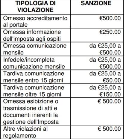 - Sanzioni per le seguenti irregolarità