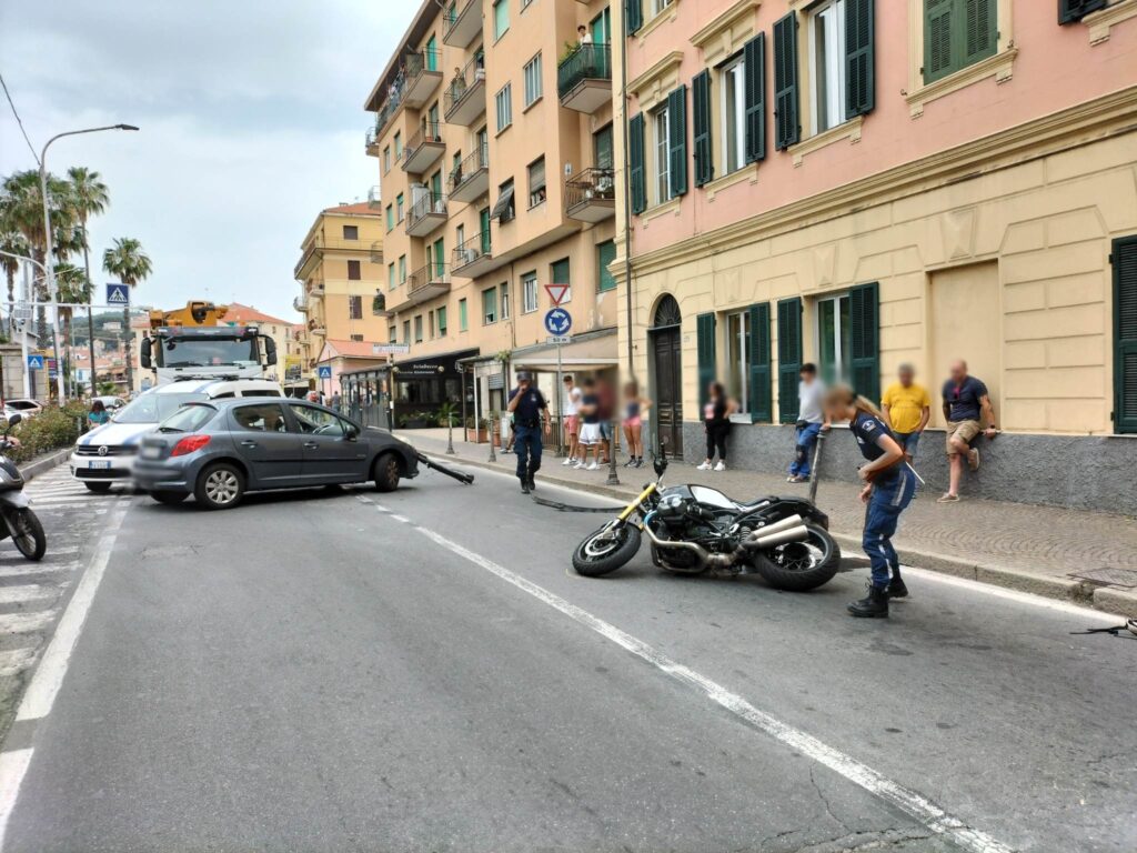 Ad avere la peggio la donna che si trovava come passeggero a bordo della moto, rovinata a terra e soccorsa dall’equipaggio della Croce Rossa di Imperia. Illesi sia il conducente della moto sia il conducente dell’auto. La donna è stata trasportata in pronto soccorso all’Ospedale di Imperia in codice giallo di media gravità.