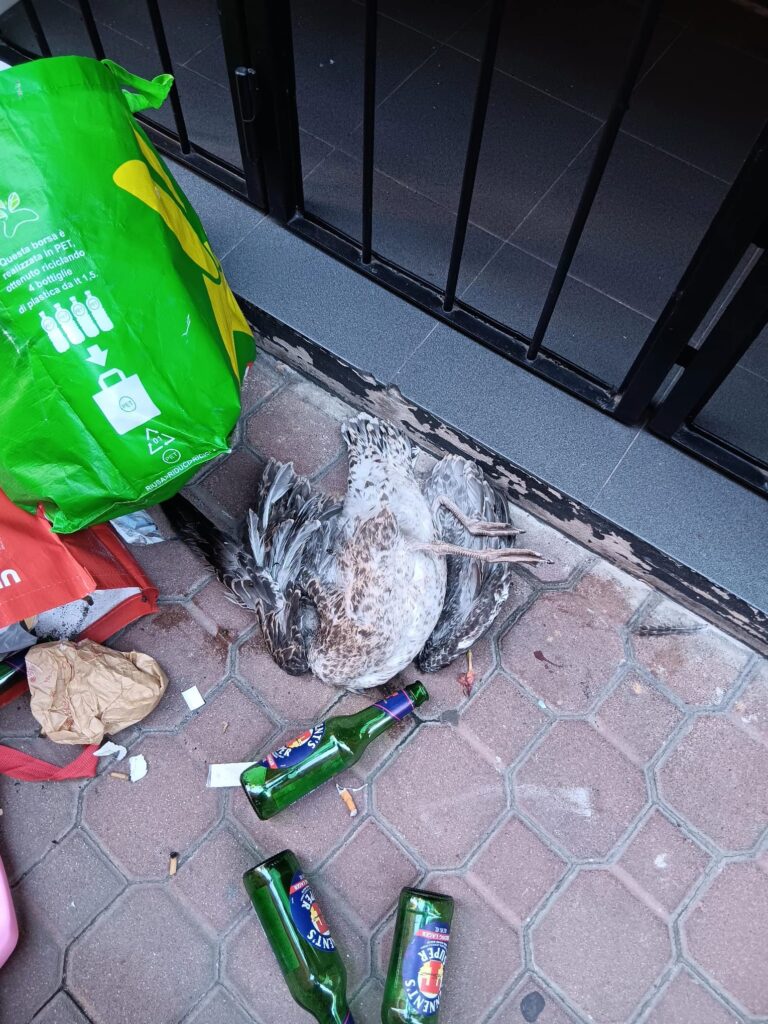 “Nei pressi del cucciolo di gabbiano abbiamo trovato un bastone sporco di sangue – raccontano i commercianti – a dimostrazione del fatto che è stato ucciso a bastobnate. Probabilmente era caduto dal nido e come commercianti l’avevamo, per così dire, adottato. Gli davamo da mangiare, in attesa che iniziasse a volare. Non capiamo come si possa essere così crudeli. A fianco al giabbiano c’erano sacchi di spazzatura, bottiglie di birra, rifiuti. Lo stesso in piazzetta dell’Olmo.
