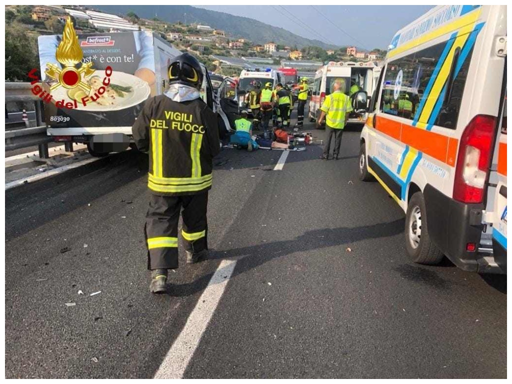 A10: mobilitazione di soccorsi tra Arma e Sanremo: tre mezzi coinvolti e 6 feriti