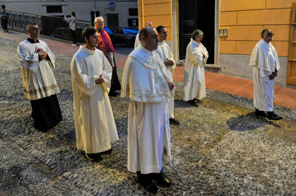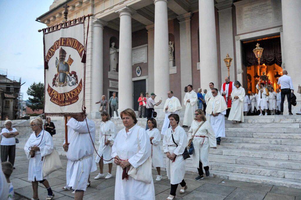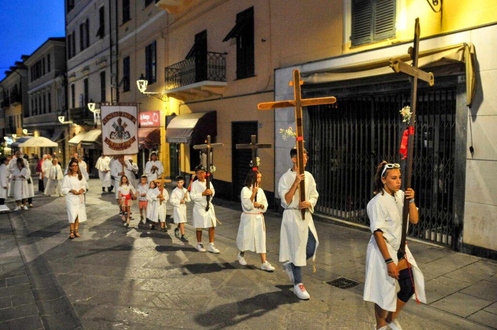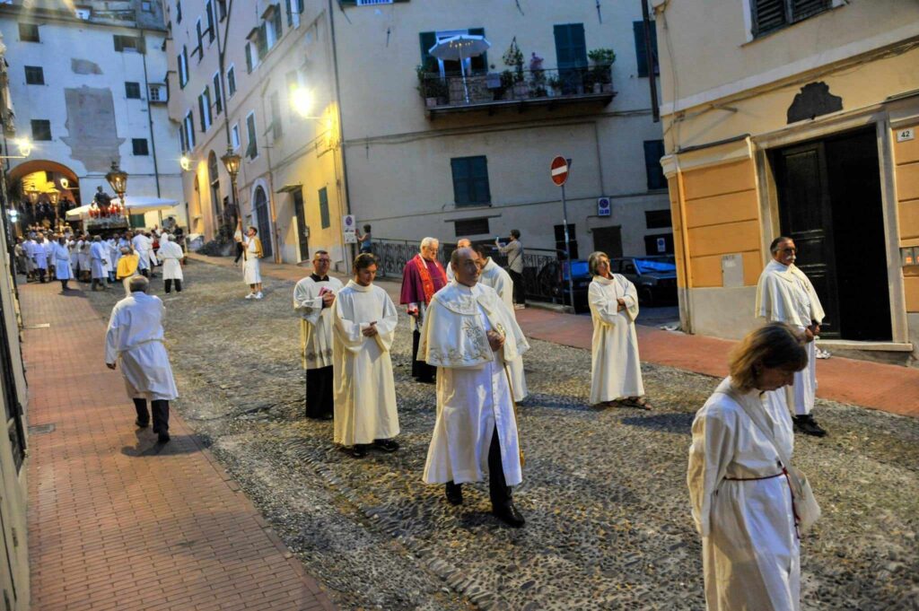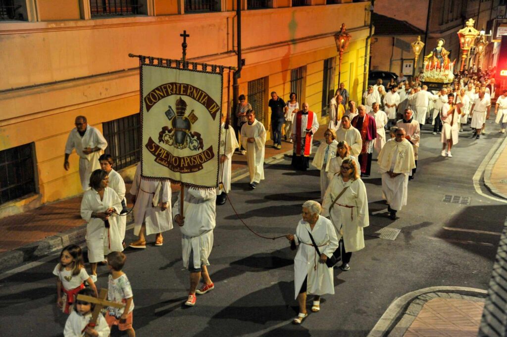 La storica cerimonia, organizzata dalla Confraternita di San Pietro Apostolo, fondata il 5 settembre 1599 a Porto Maurizio, è iniziata, dopo la messa solenne celebrata dal parroco della Basilica Concattedrale San Maurizio monsignor Lucio Fabbris, con la suggestiva processione notturna per le vie di Porto Maurizio.