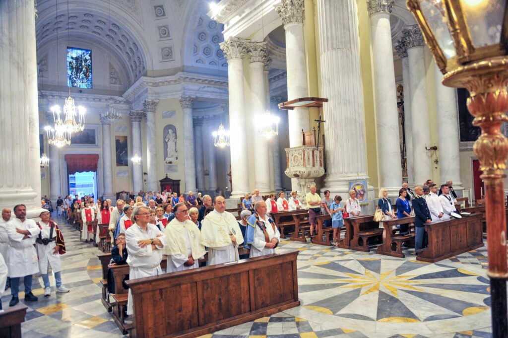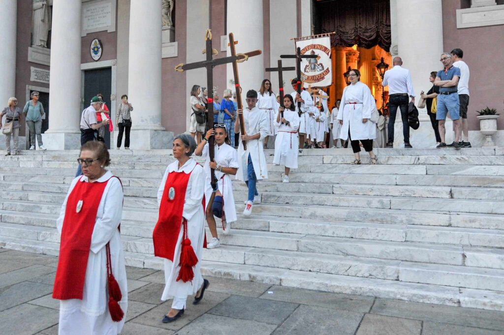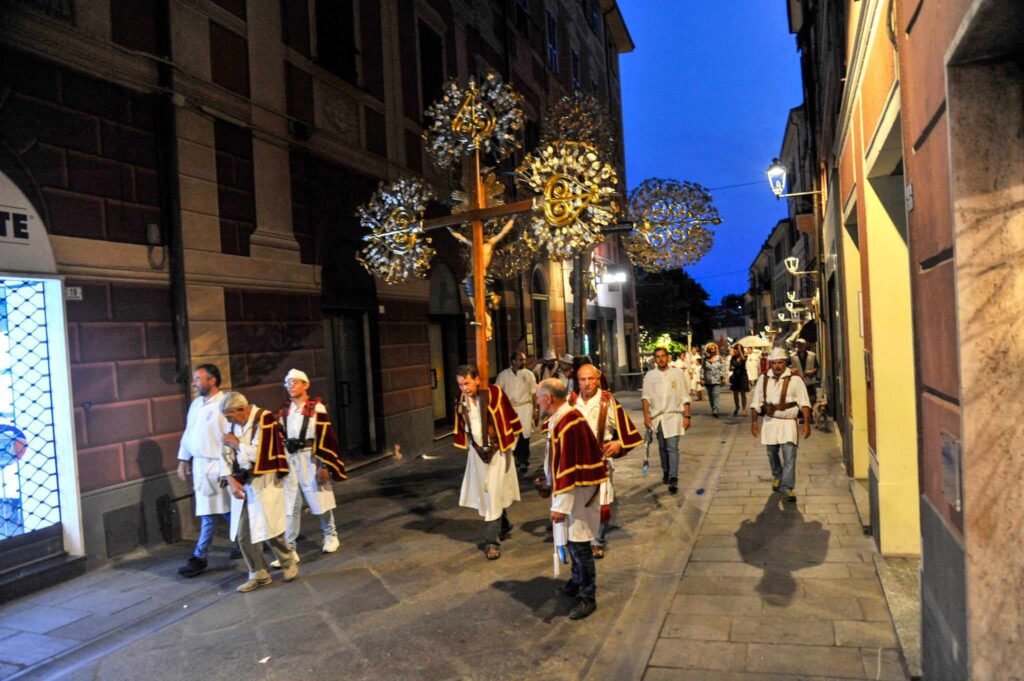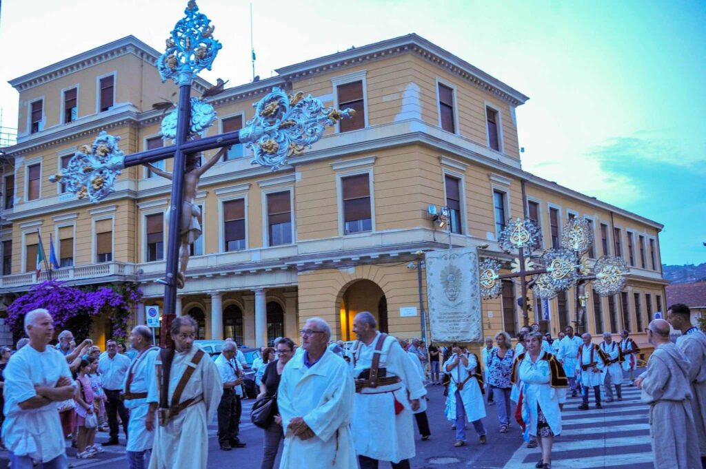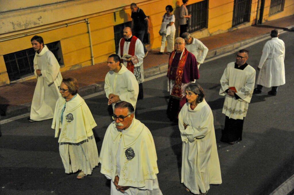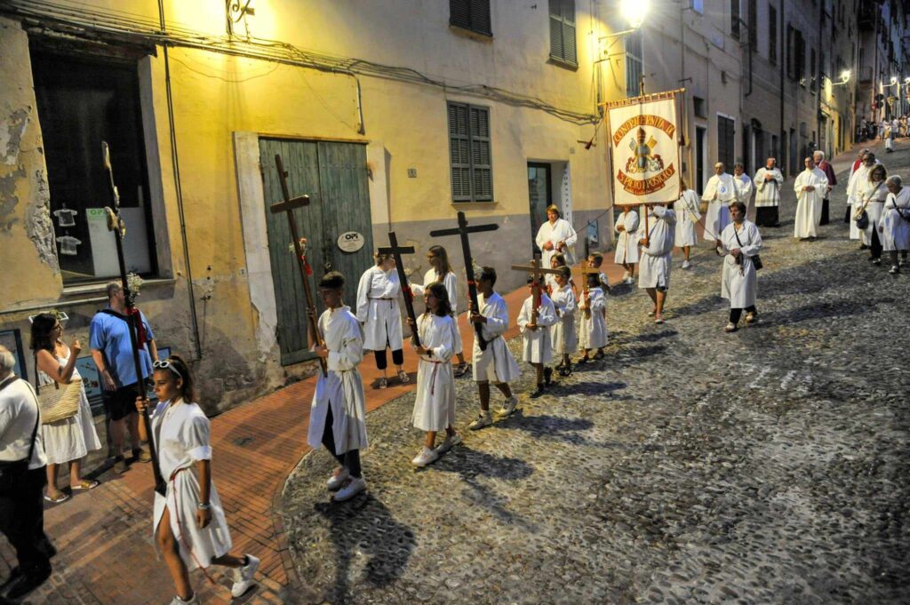 La storica cerimonia, organizzata dalla Confraternita di San Pietro Apostolo, fondata il 5 settembre 1599 a Porto Maurizio, è iniziata, dopo la messa solenne celebrata dal parroco della Basilica Concattedrale San Maurizio monsignor Lucio Fabbris, con la suggestiva processione notturna per le vie di Porto Maurizio.