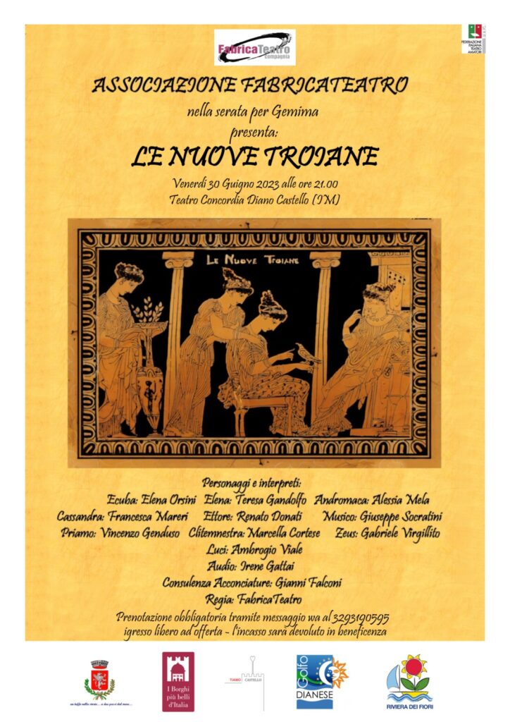 L’Associazione Fabbrica Teatro ieri sera al Teatro Concordia di Diano Castello, in occasione della “serata per Gemima“, ha presentato “Le nuove troiane”.
