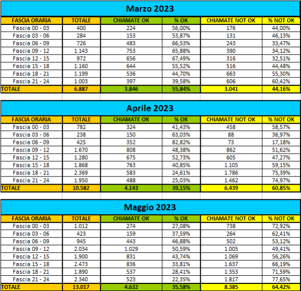 Dal monitoraggio, come evidenziato nella tabella allegata alla delibera di Giunta, è emerso un alto numero di chiamate senza risposta o con risposta negativa e da qui è nata la decisioone dell’Amministrazione comunale di incrementare il numero dei taxi in servizio in città.