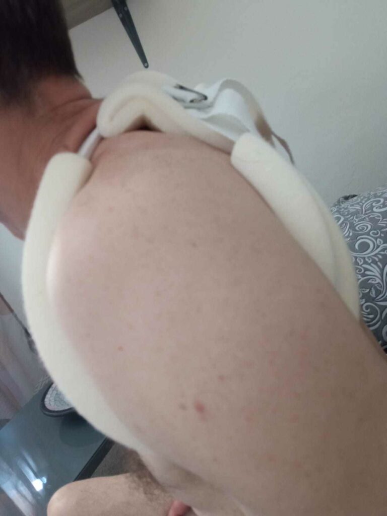 Mio padre si è rotto la clavicola, oltre a varie escoriazioni in più parti del corpo. Dovrà portare il tutore e non potrà lavorare per un mese. Un bel disagio, ma per fortuna niente di grave.