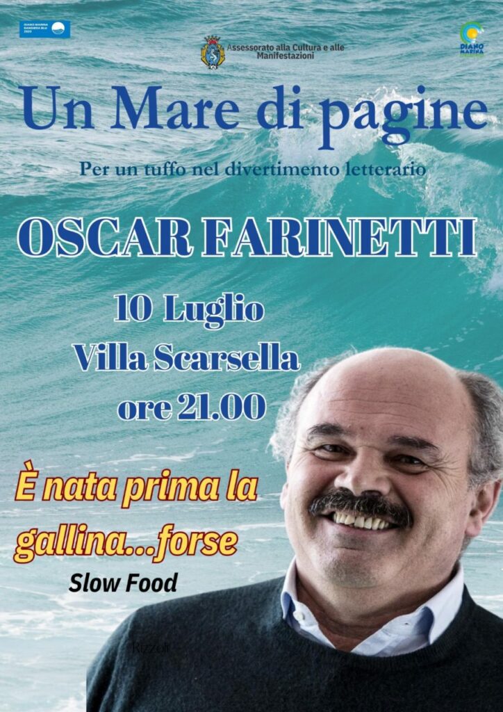 Oscar Farinetti sarà il secondo ospite stagionale della rassegna “Un mare di pagine” di Diano Marina. Dopo il bagno di folla dell’evento inaugurale con Mario Giordano sul molo delle Tartarughe, la manifestazione promossa dall’assessorato alla cultura, e offerta con ingresso libero a residenti e turisti, si sposterà lunedì 10 luglio nel parco di villa Scarsella per accogliere alle 21 il noto imprenditore e scrittore piemontese.