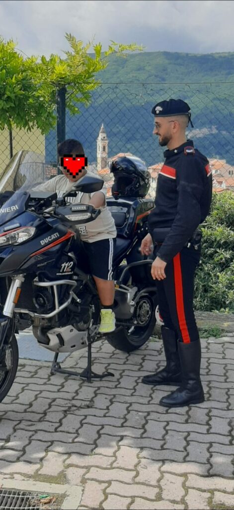 I Carabinieri, giunti con due moto di servizio e l’autovettura di pronto intervento, hanno illustrato ai bambini le attività svolte e le dotazioni dei veicoli di servizio ed ognuno di loro, a turno, ha provato l’emozione di salire a bordo dei suddetti mezzi speciali, concretizzando così le loro fantasie, aspirazioni e immaginazioni.
